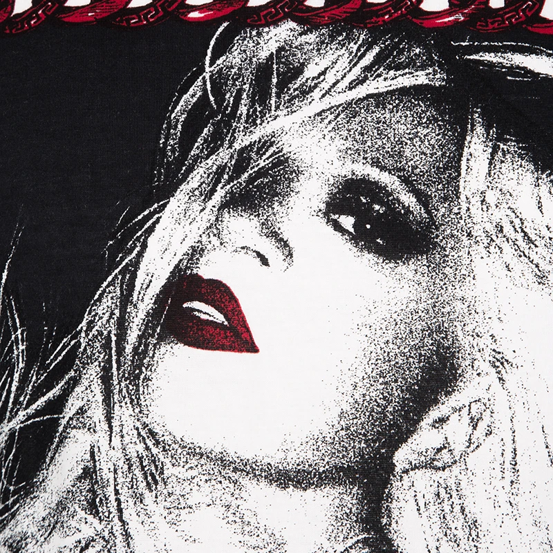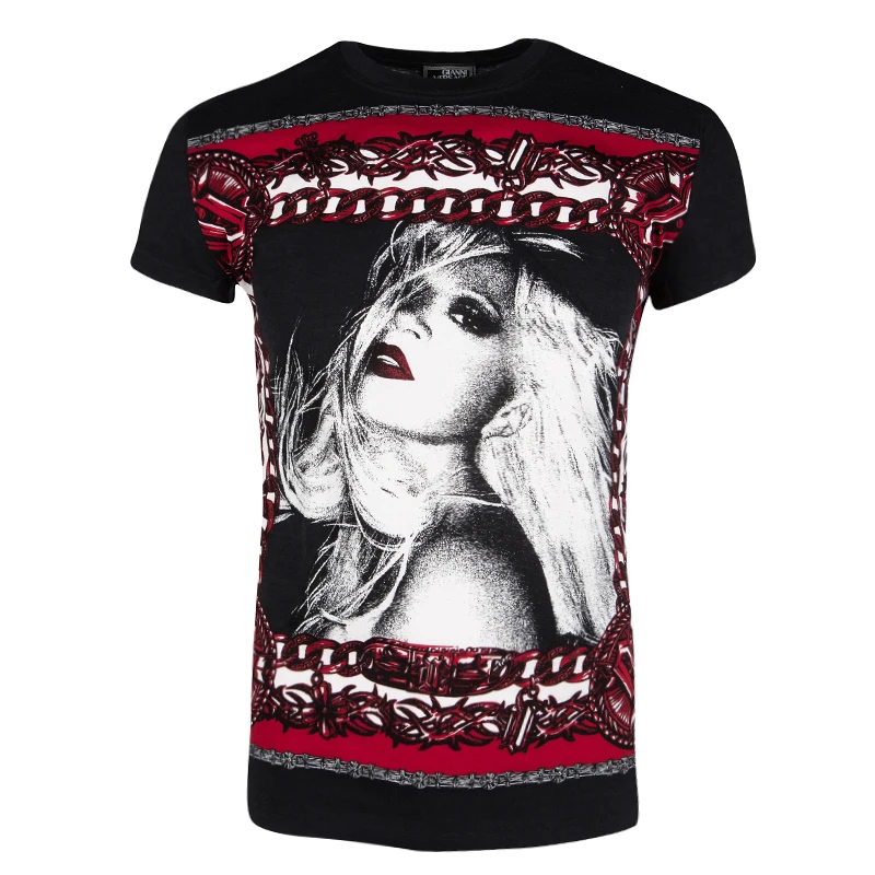 Add a dose of fashion to your casual style with this t-shirt from Gianni Versace! It brings a crew neck, short sleeves, and a large Donatella print. You can team it with a pair of jeans and sneakers.