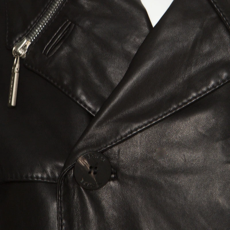 This gorgeous Gianni Versace Couture overcoat, made from leather, will make others nod in admiration. It comes in a double-breasted design accompanied by zippers and a belt for added shape. In terms of both tailoring and design, this coat is a marvel.