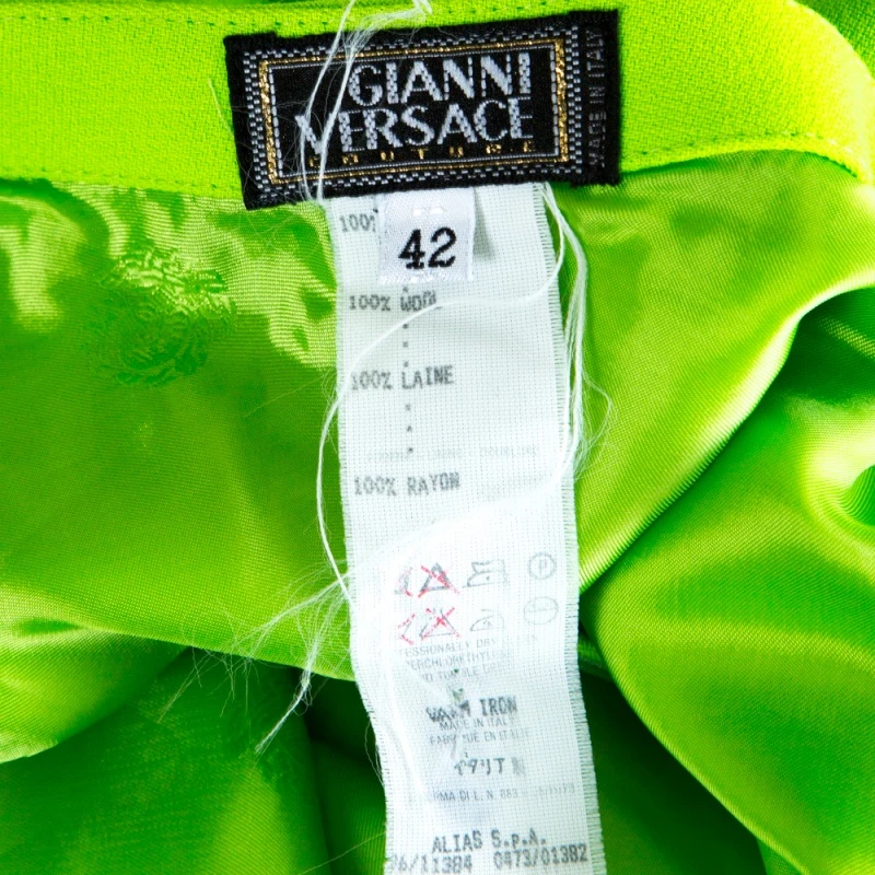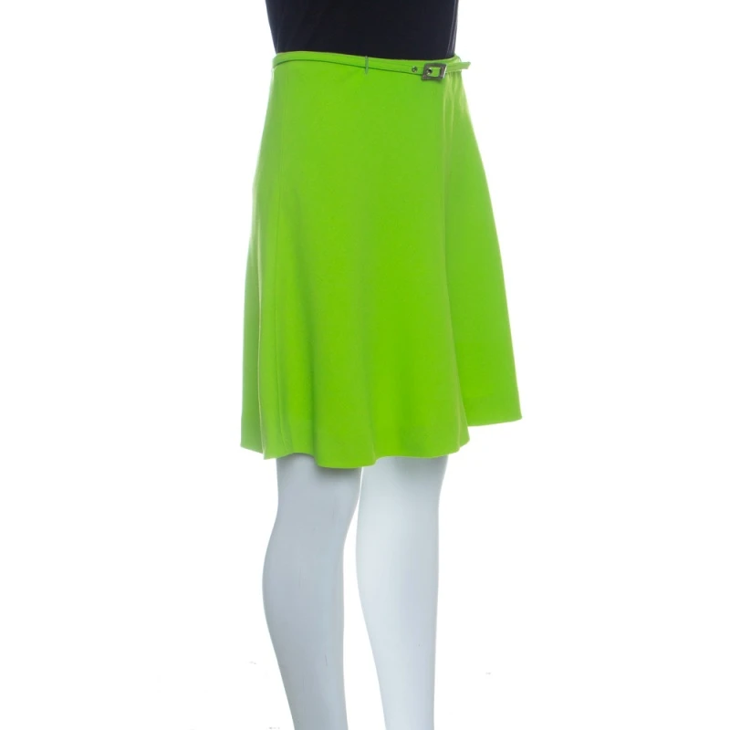 The house of Gianni Versace makes sure you stay the centre if attention wherever you go! Bringing to you a chic mini skirt in a bright shade of green, the design house ensures that your co-ordinating woes are kept at bay. This skirt, featuring a breezy circular silhouette accompanied by a smart textured buckle belt is crafted in soft wool to keep you comfortable all day long while you flaunt a look of stylish panache.