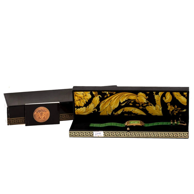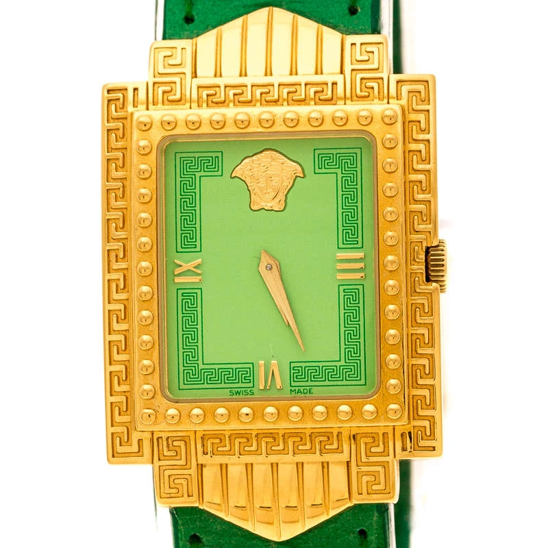 This lovely timepiece from Gianni Versace is curated keeping in mind the grand history and heritage of the brand. Crafted from gold-plated metal, this charmer has a case diameter of 28 mm and the signature Medusa motif on the dial which is known to be symbolic of power, beauty and strength. The bezel exhibits engraved Greek keys and the case is neatly held by leather straps and a gold-tone engraved buckle closure. Functioning in a quartz movement, this stunner of a watch will adorn your wrist with utmost elegance and feminity!