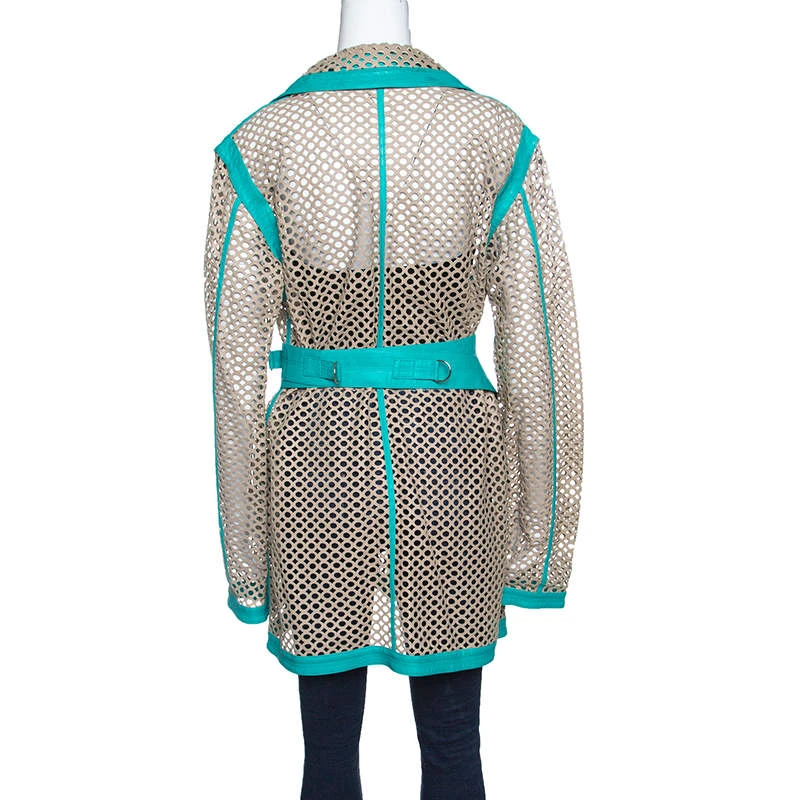 Own this super stylish coat from the house of Gianni Versace and be the star of your evening events. The vintage piece is cut entirely from leather and has contrast trims. It is complete with an attached belt and two front pockets