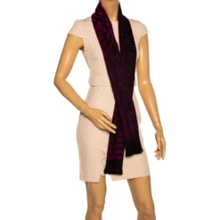 Versace Purple Striped Medusa Patterned Wool Scarf For Men