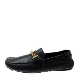 Versace Black Grained Leather Medusa Icon Chain Detail Loafers Size 42 For Men