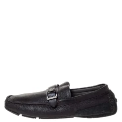 Versace Black Leather Buckle Detail Slip On Loafers Size 43 For Men