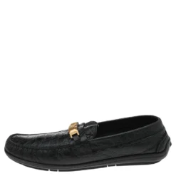 Versace Black Croc Embossed Leather Medusa Loafers Size 45 For Men