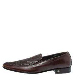 Versace Brown Snakeskin Leather Medusa Slip On Loafers Size 42 For Men