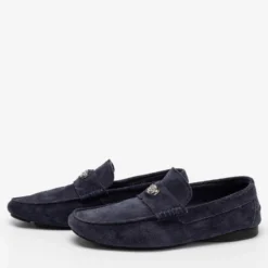 Versace Dark Brown Leather Medusa Embellished Slip On Loafers 41 For Men