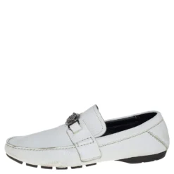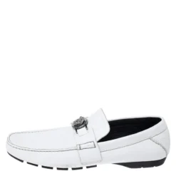 Versace White Leather Medusa Detail Slip On Loafers Size 41 For Men