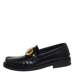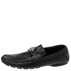 Versace Black Leather Medusa Detail Slip On Loafers Size 40 For Men
