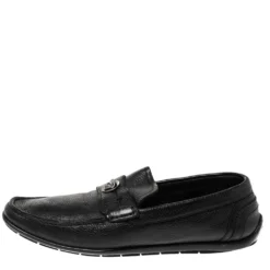 Versace Black Leather Medusa Detail Slip On Loafers Size 43 For Men