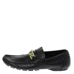 Versace Black Leather Meander Pattern Medusa Loafers Size 43 For Men