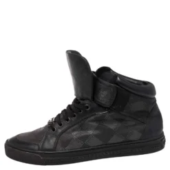Versace Black Patent Leather And Signature Canvas Medusa Detail Slip On Loafers Size 44 For Men