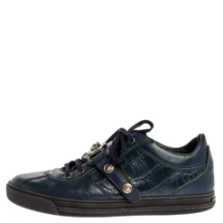 Versace Black/Yellow Leather/Rubber Baroque Pattern Print Low Top Sneakers Size EU 37 For Women