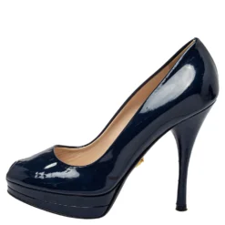 Versace Blue Ostrich Leather Medusa Chain Detail Loafers Size 41 For Men