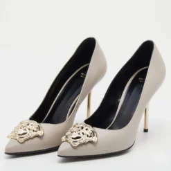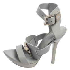 Versace Grey Croc Embossed Leather And Patent Leather Medusa Slip On Loafers Size 41 For Men