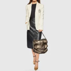 Versace Metallic Leather Pocket Shoulder Bag For Women
