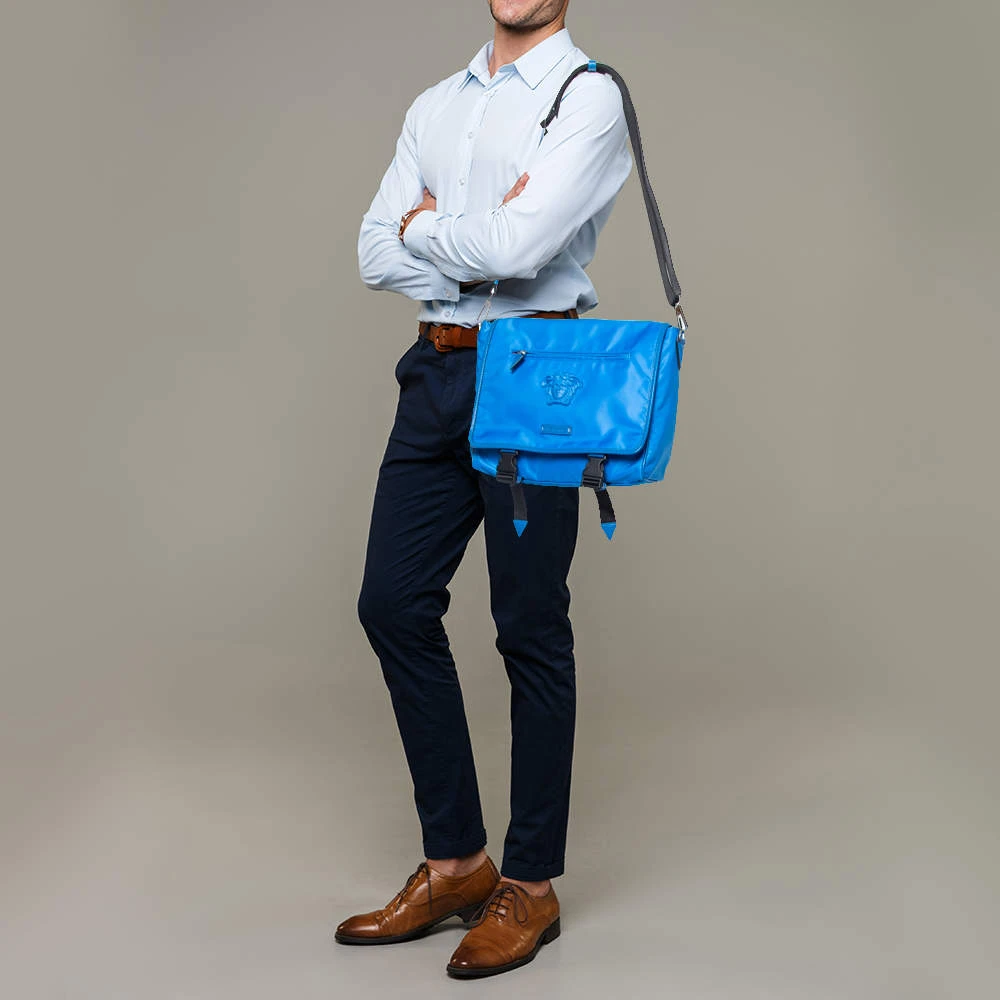 You will be totally mesmerized by this gorgeous messenger bag from Versace. It has been crafted using Azure blue nylon on the exterior and features the signatory Medusa embellishment on the front. This bag comes with an adjustable strap and a well-lined fabric interior that helps you carry your essentials with ease.