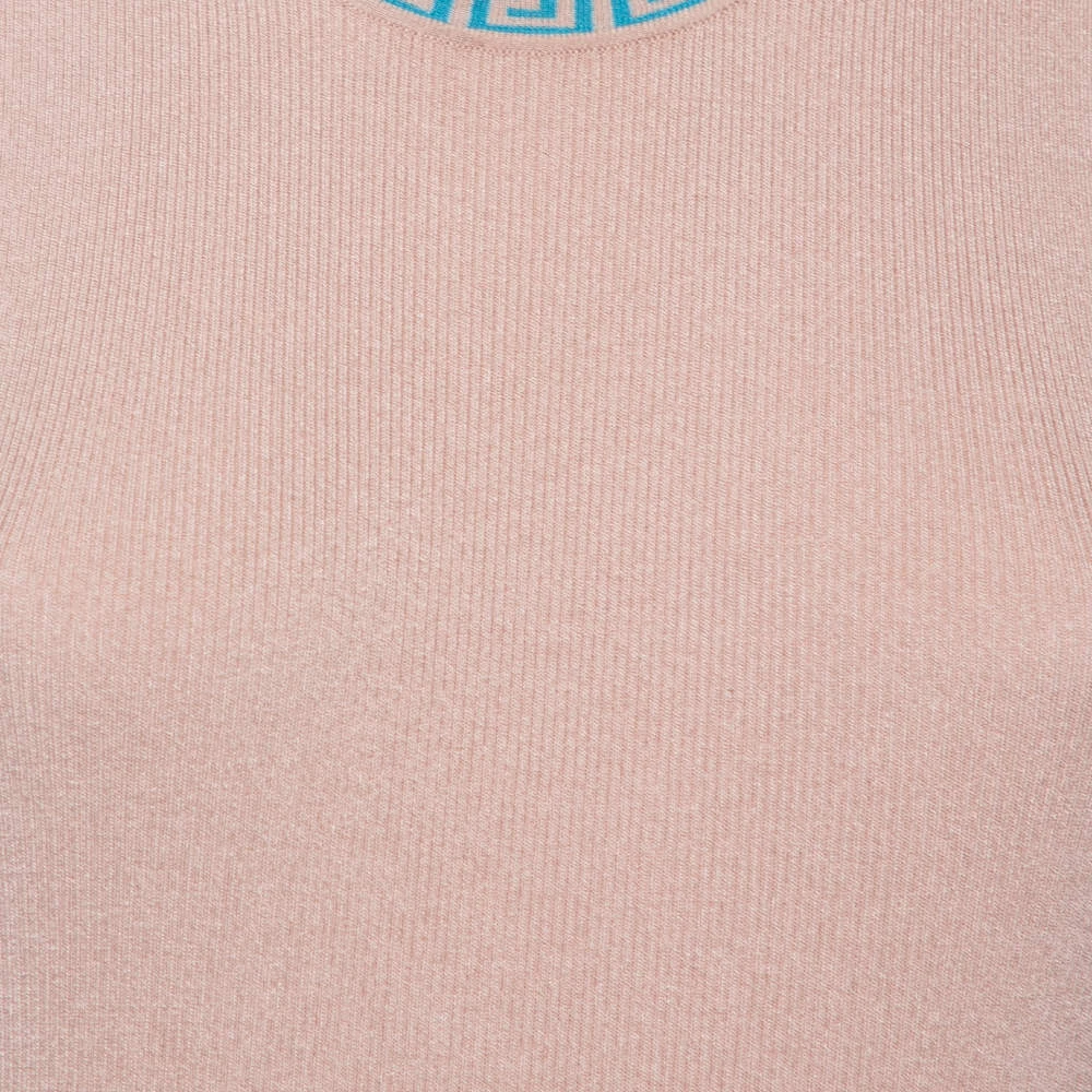 This Versace tank top is such a chic creation! The logo detail on the neckline adds an opulent touch to the top. It will look stylish when tucked inside paper bag jeans and finished off with matching chunky sneakers.
