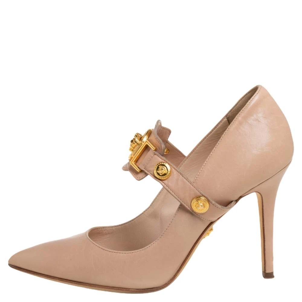 It’s a simple pump that Versace elevates to form this design. Fashioned using leather into a stunning pointed-toe silhouette, the Mary Jane pumps are elevated by 10 cm heels and detailed with a Medusa-embellished strap. Get this pair now!