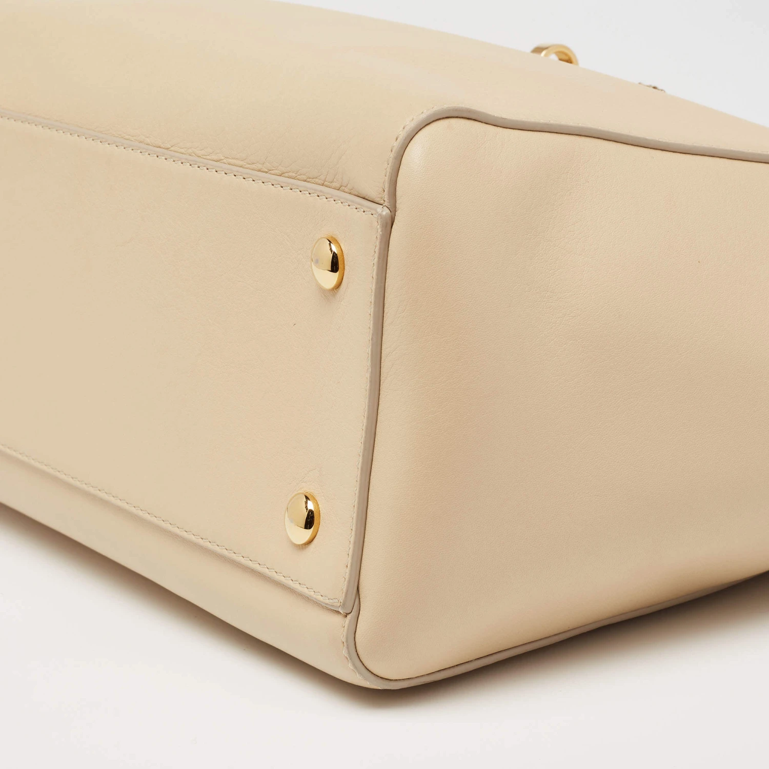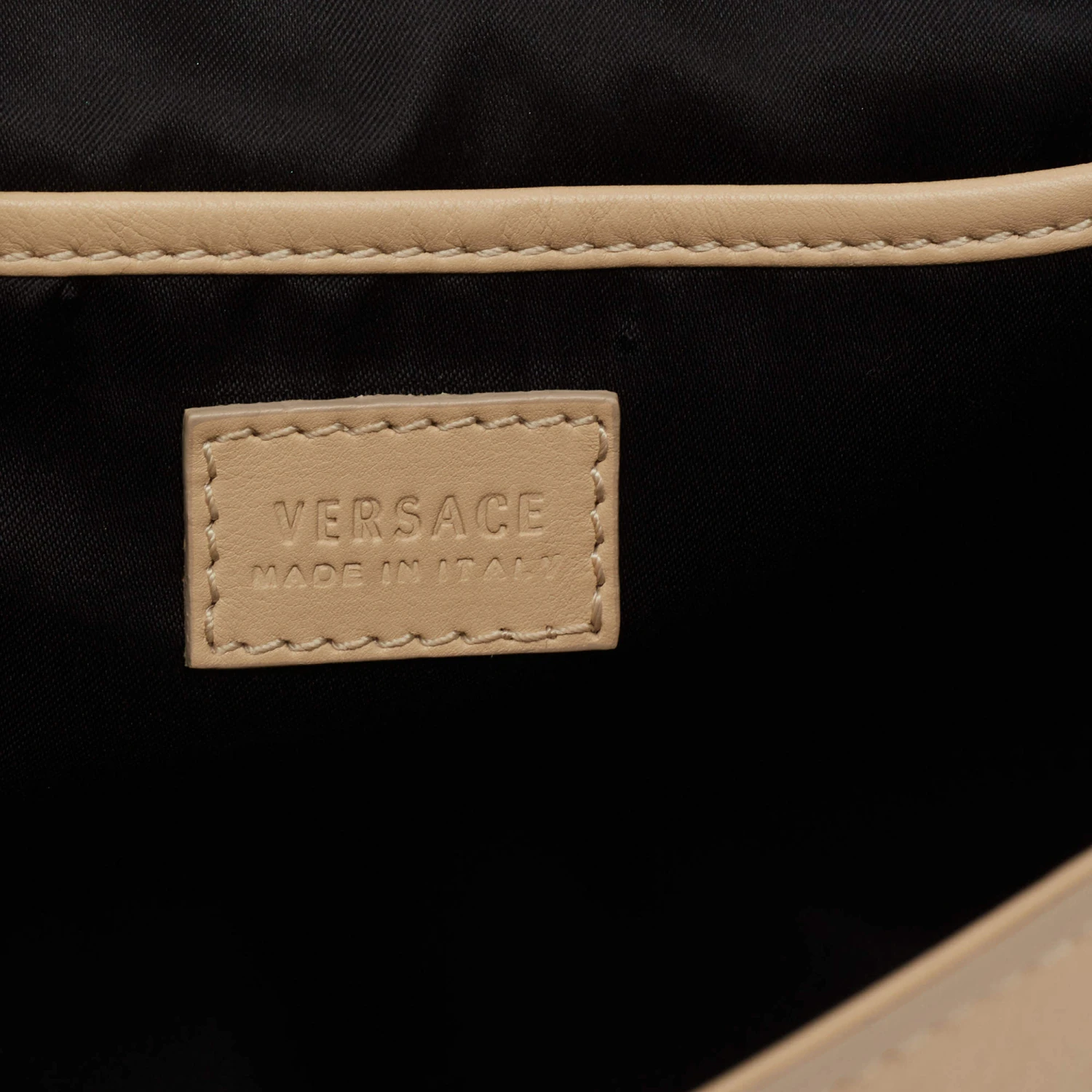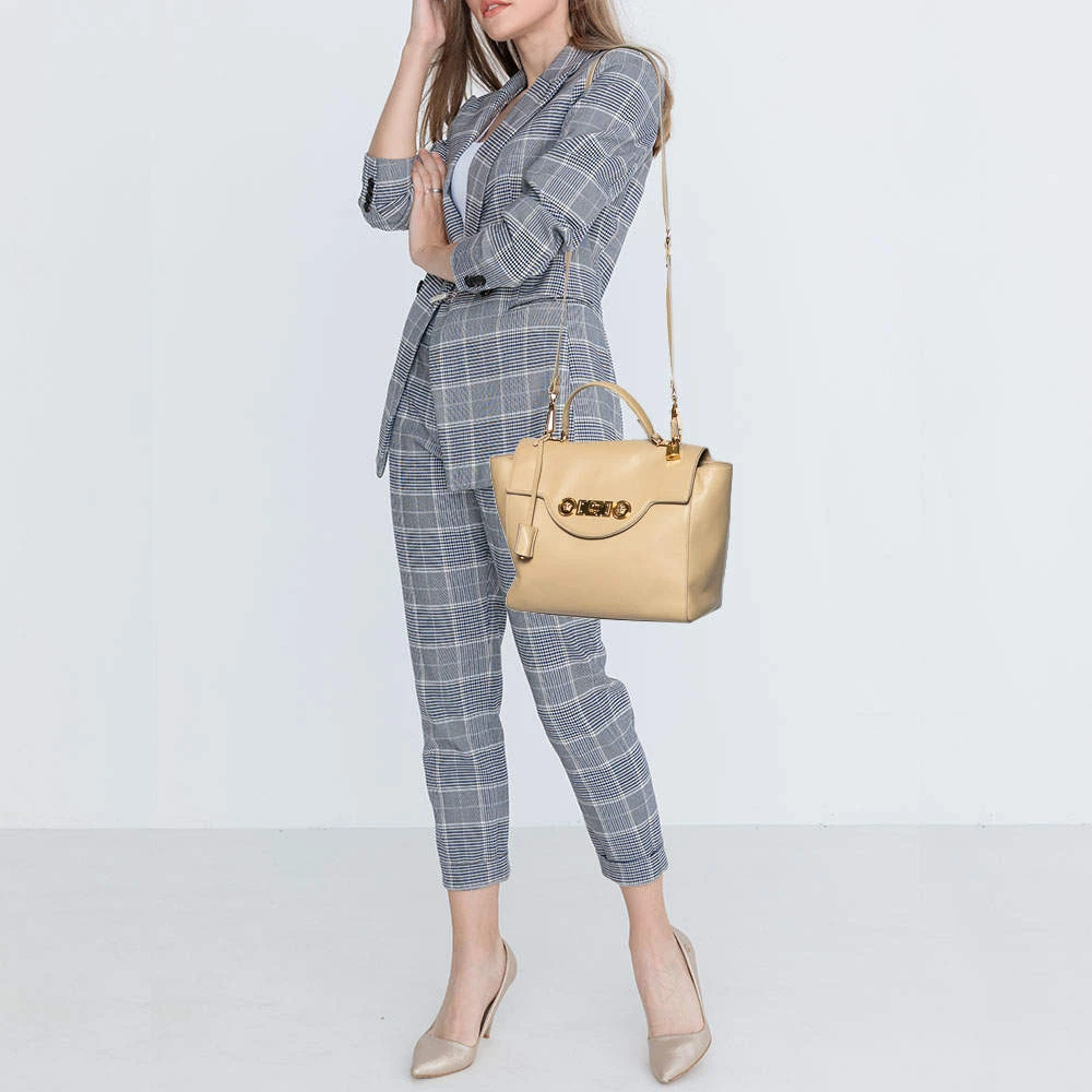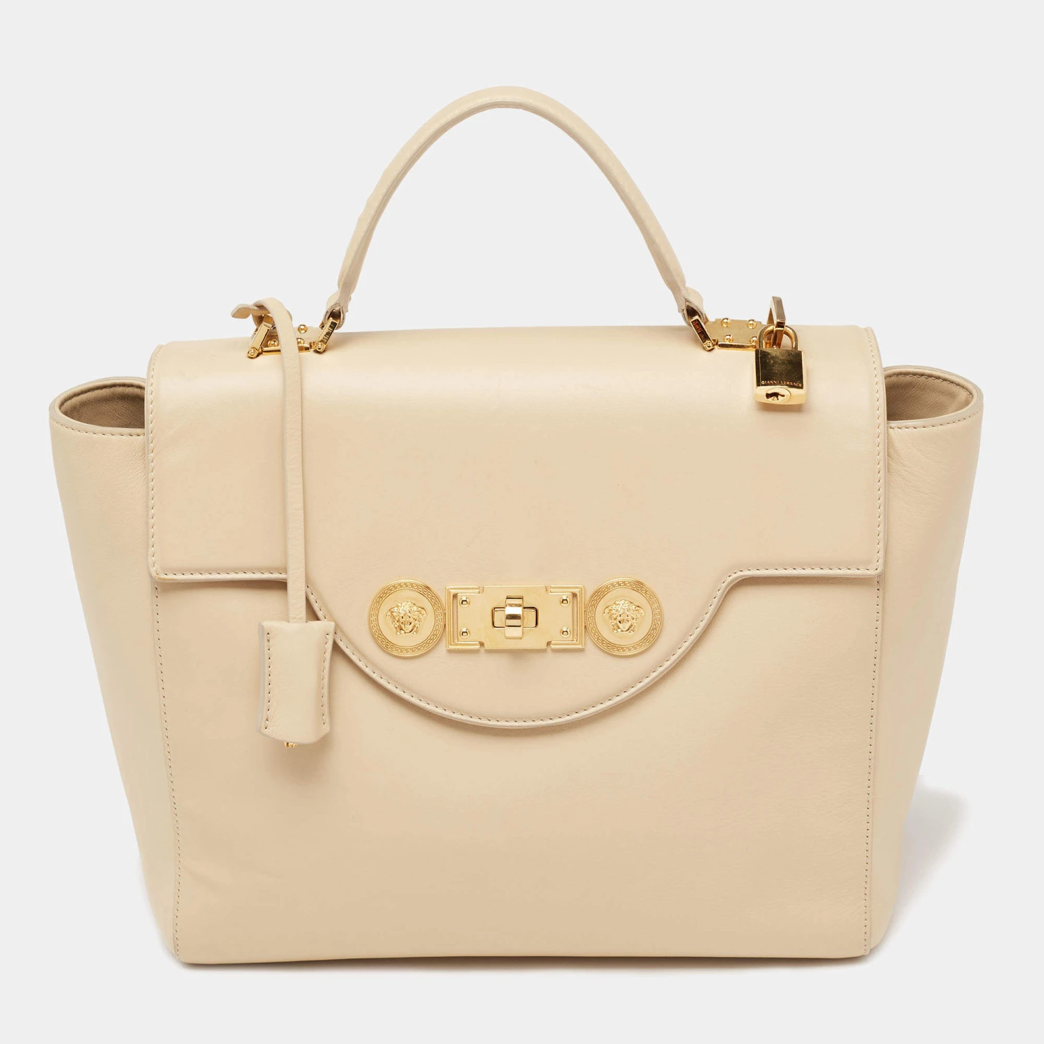 Imparting unparalleled elegance and sophistication, this bag from Versace is made from the finest material in a gorgeous beige hue. While the roomy interior offers ample space, the top handle allows you to carry it with much elan.