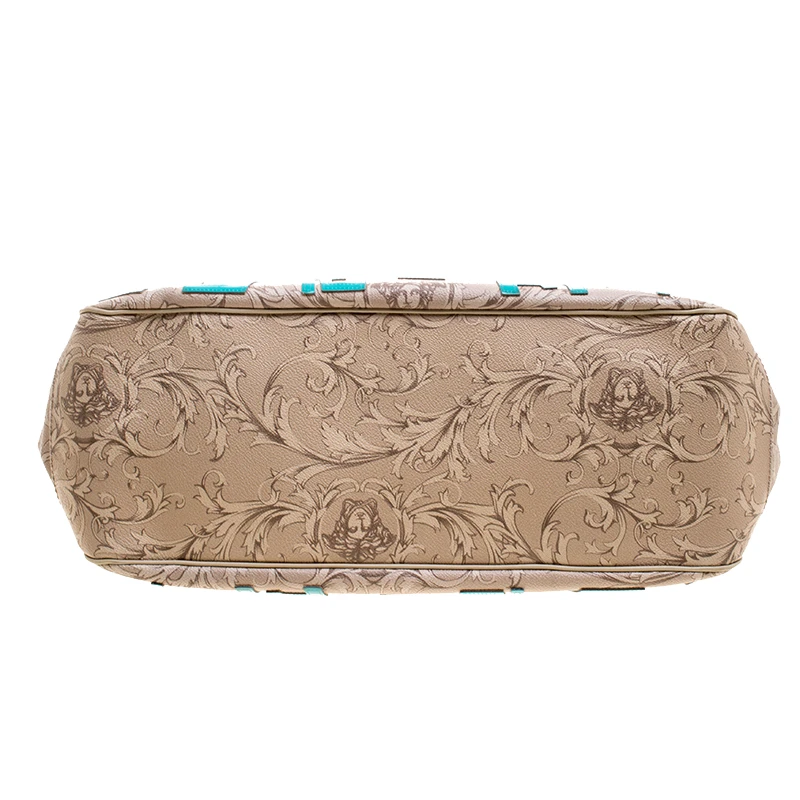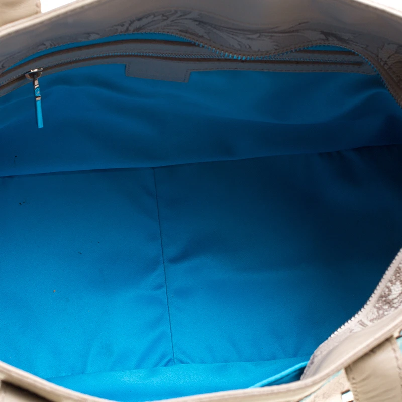 An absolute delight, this tote is a Versace creation. It has been crafted from Medusa print leather and comes with a slip pocket on each side. The tote is equipped with a beige exterior that flaunts the brand label while being held by two handles. The satin lined interior houses a slip and a zip pocket.