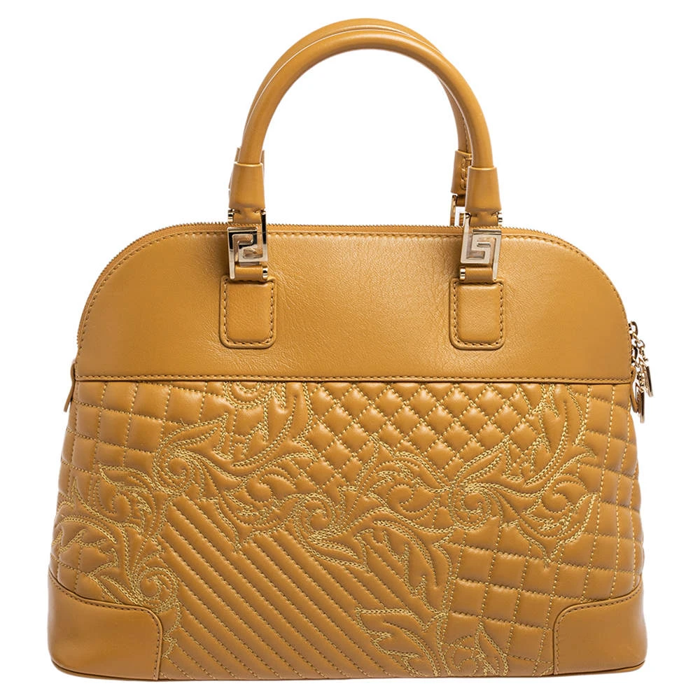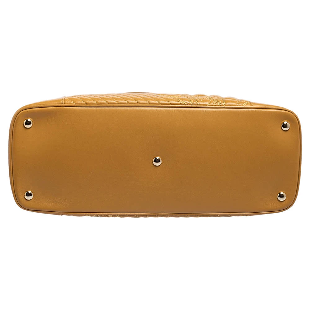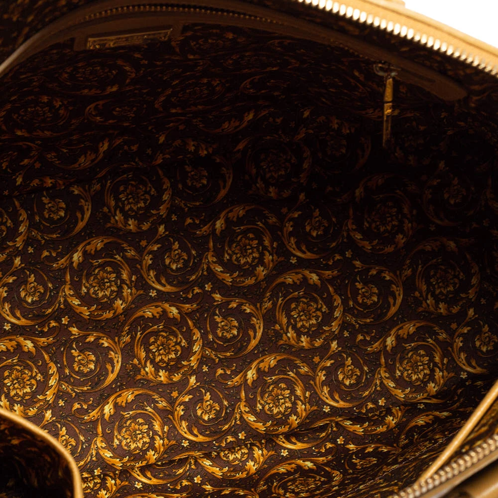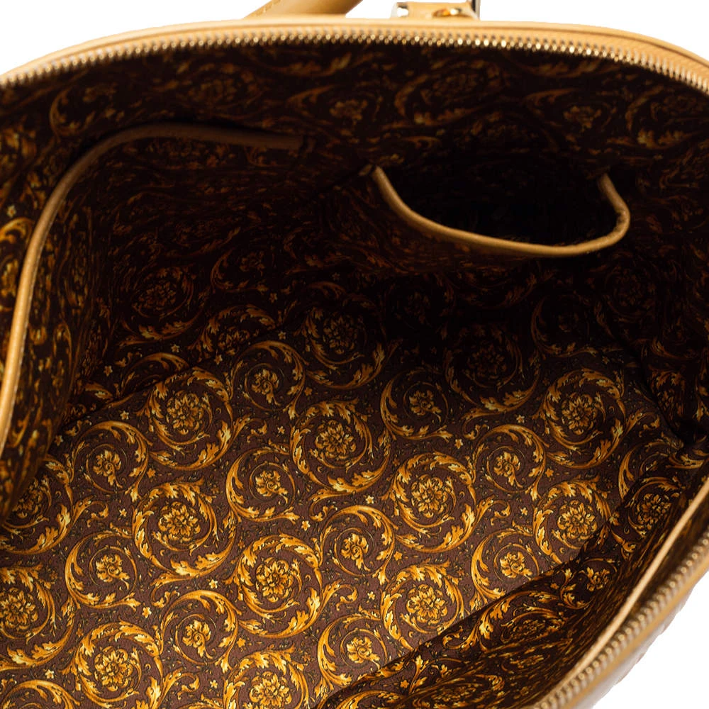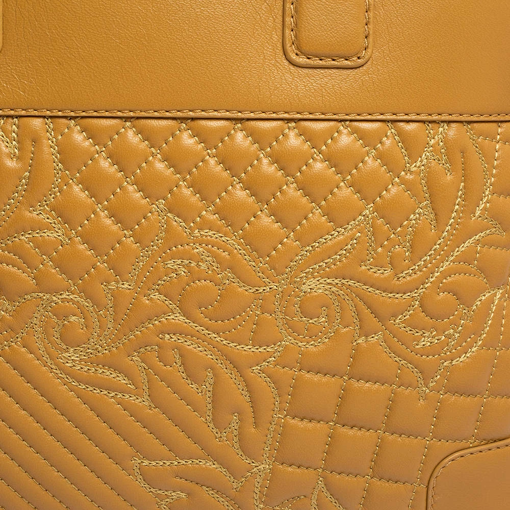 The House of Versace brings you this glamorous Athena Vanitas satchel that will grant you nothing but style and luxury. It is made from beige quilted leather into a sturdy silhouette. It flaunts dual handles, a gold-toned charm on the front, and a shoulder strap. This satchel will definitely add an element of panache to your attire.