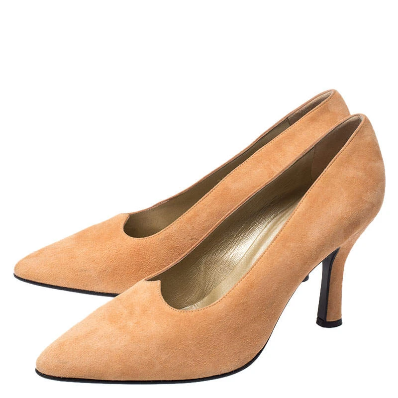 Raise the style bar wherever you go with this pair of Versace pumps. Made of suede in beige and designed with pointed toes and 9.5 cm heels featuring Medusa studs, these will give you the perfect amount of fashion and confidence.