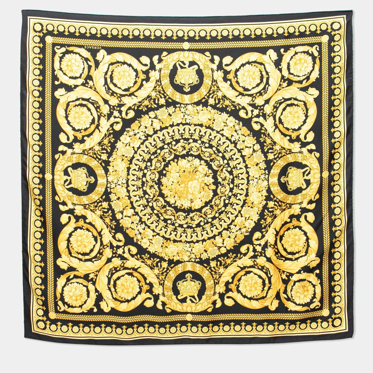 This black Versace scarf will lend a luxurious touch to your outfits and thus makes for a great accessory. It is made of silk and styled with a beautiful design of Baroque prints in gold. It can be styled with an all-black outfit.