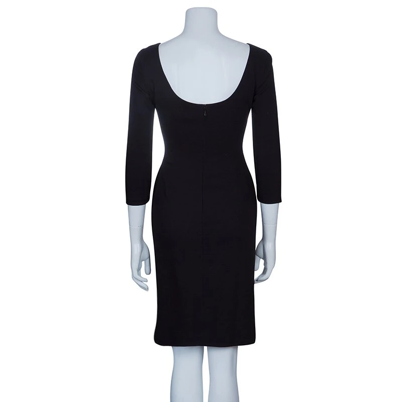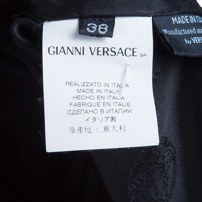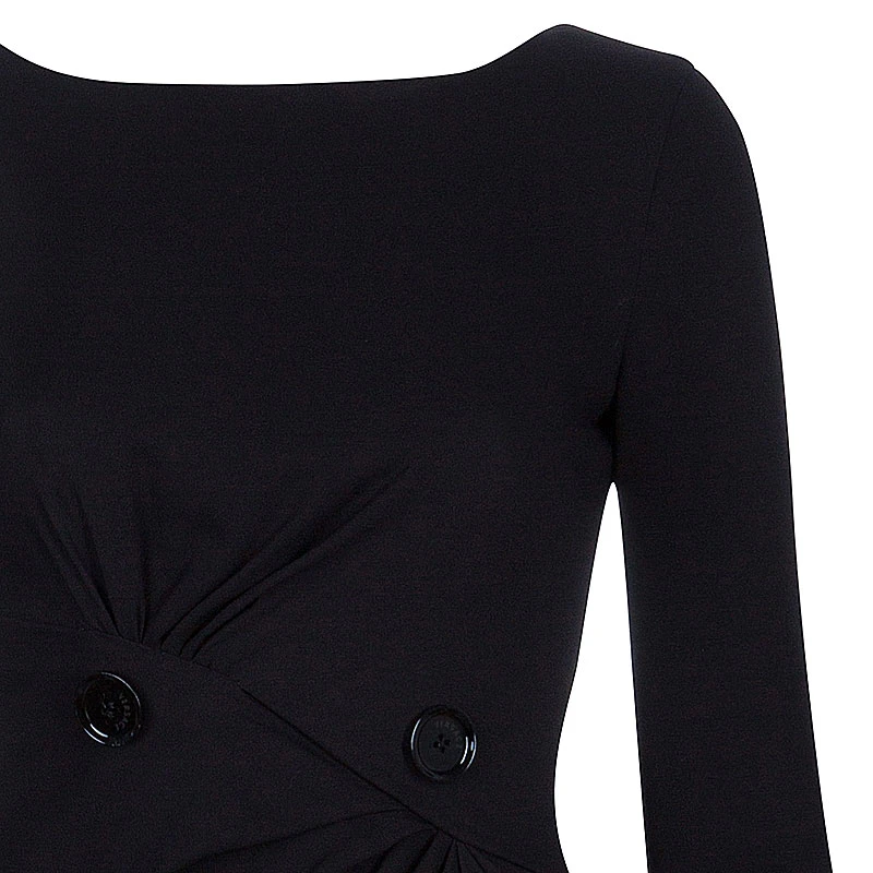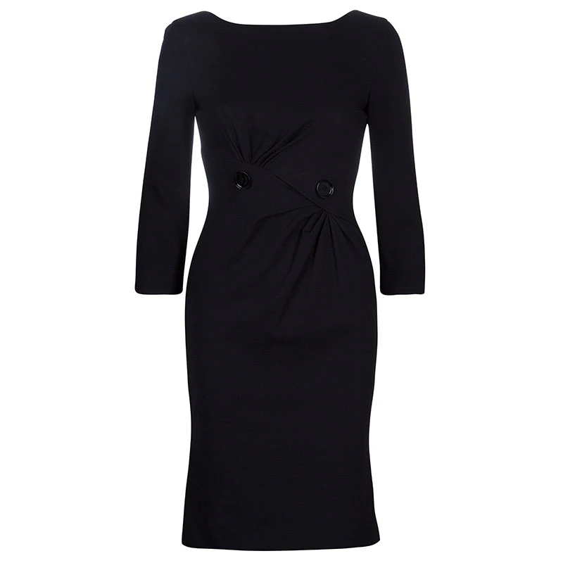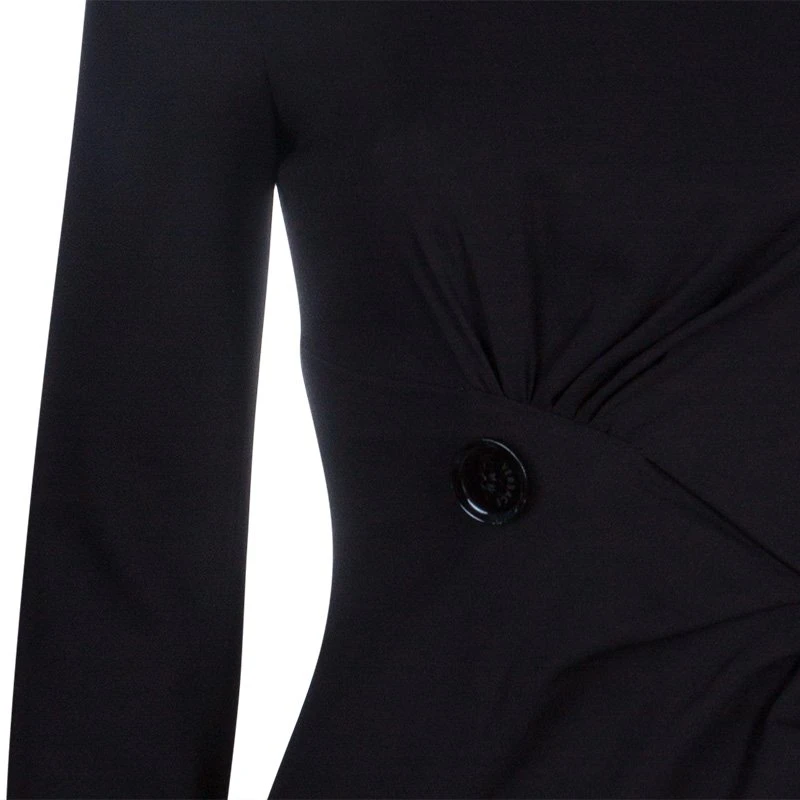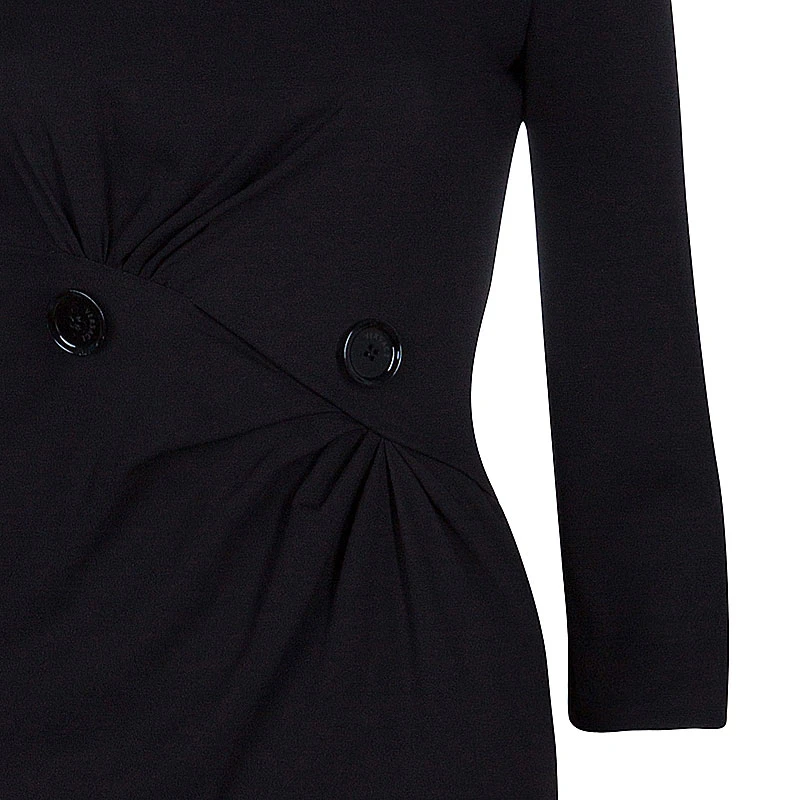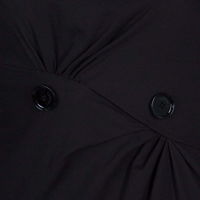 Crafted from a wool blend, this black dress by Versace is perfect for that winter evening out. It has a high neck, long sleeves and button detail on the front. It also has a rear zipped closure.