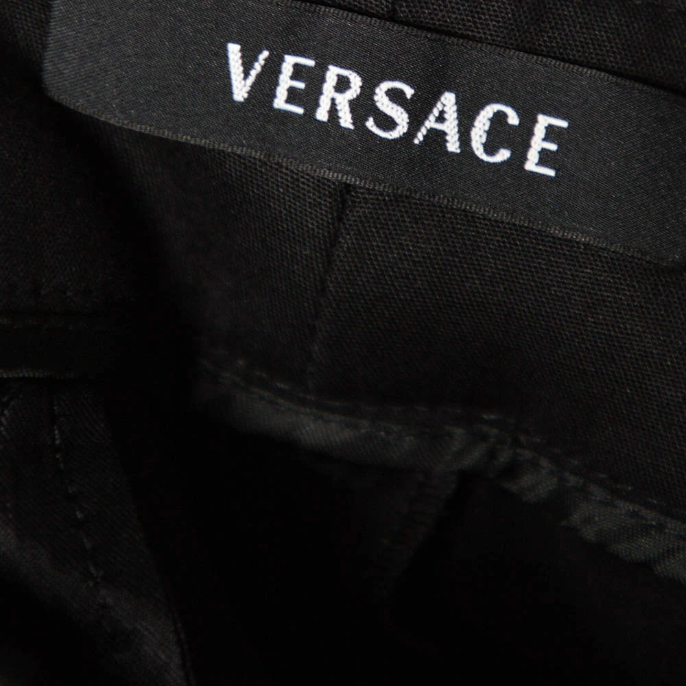 This pair of trousers by Versace ensures a formal style that is full of comfort. Made of a cotton blend, the women’s trousers in black feature two pockets, belt loops on the waistband, and gold-tone detailing at the hem.