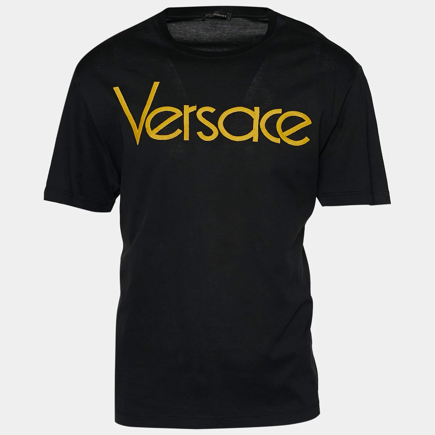 Versace brings you a simple t-shirt elevated by logo prints on the front. It has been tailored from cotton in a black shade and features short sleeves. Style the creation with sneakers and denim pants for a cool and casual look.