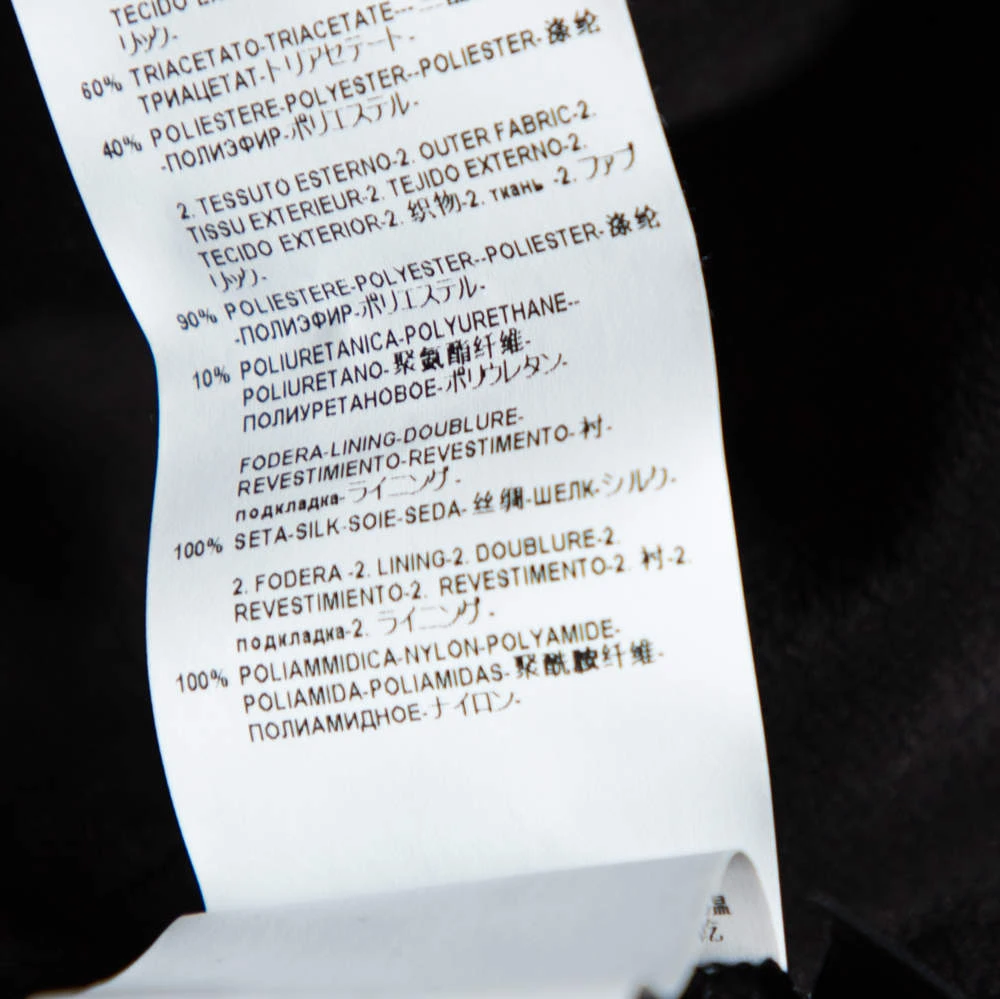 - Composition: Fabric: 60% Triacetate , 40% Polyester; Fabric 2: 90% Polyester , 10% Polyurethane ; Lining: 100% Silk ; Lining 2: 100% Polyamide