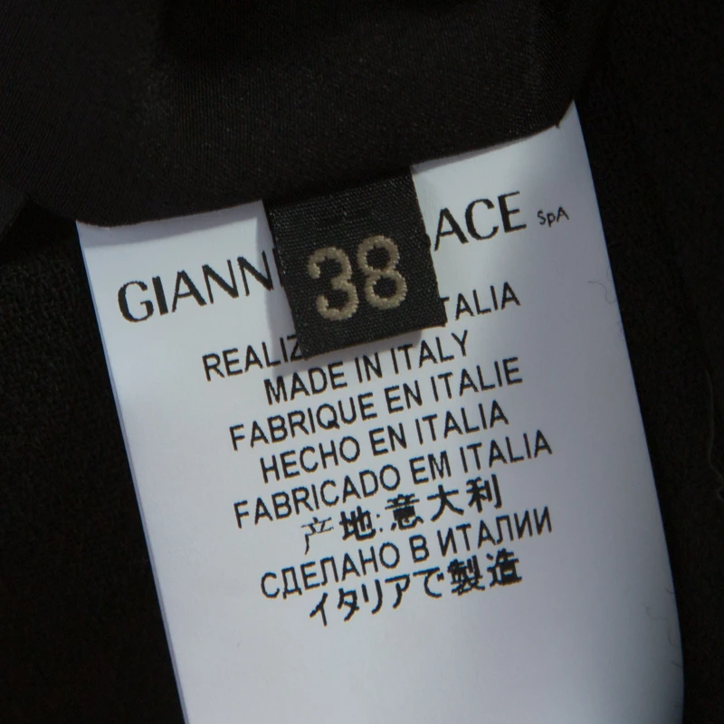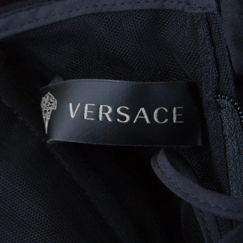 Words fall short to describe this shift dress from Versace. It is made from wool and designed with an asymmetric cut on one of the shoulders. The black dress has a zip closure and the neck cuff is held by buttons.