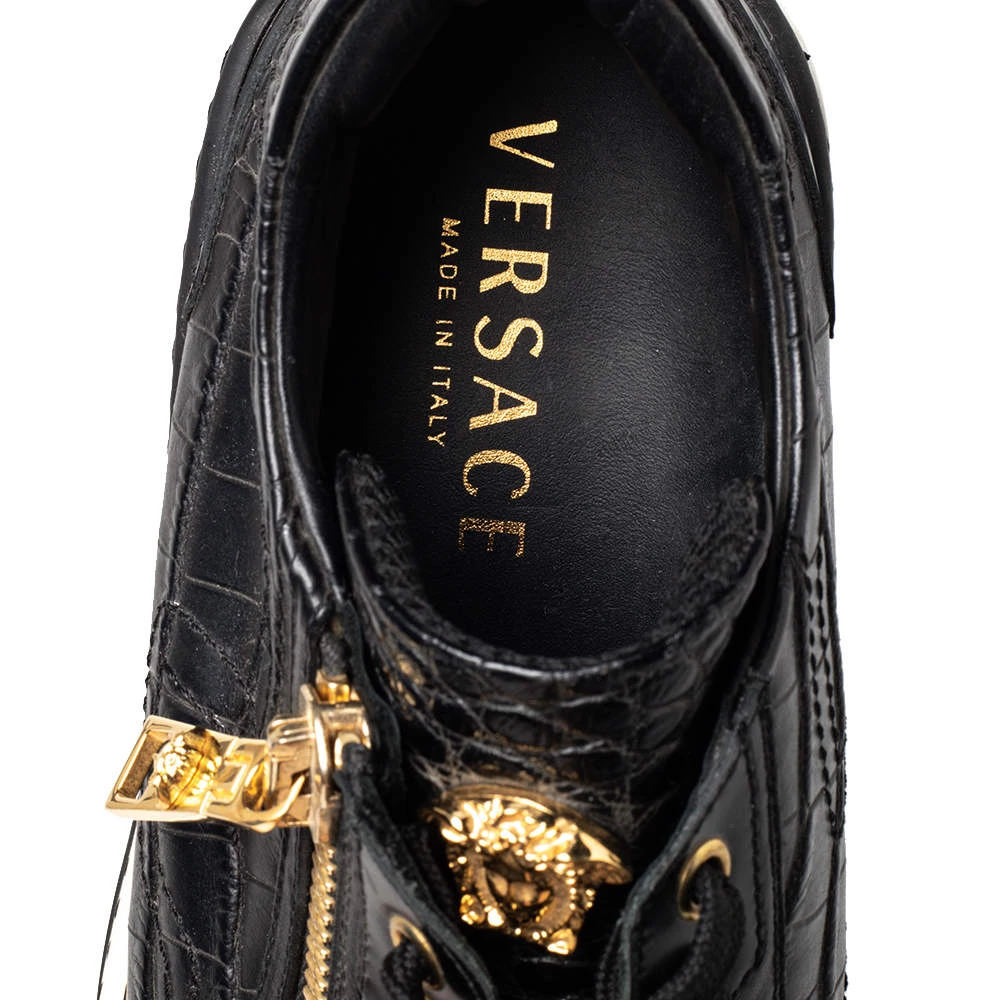 Versace Black Croc Embossed And Leather Low Top Sneakers Size 41 For Men -Versace Official Website luxury men versace used shoes p468070 006