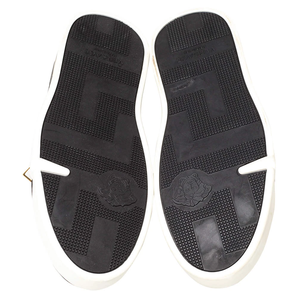 These sneakers are the epitome of versatility, meant to lend a luxe twist to your outfit. Looking fashionable in your casuals is as easy as slipping in these gorgeous black sneakers crafted from leather with croc-embossed panels. Designed by Versace, they feature the Medusa detail, lace-up vamps, gold-tone zipper accents, and rubber soles.