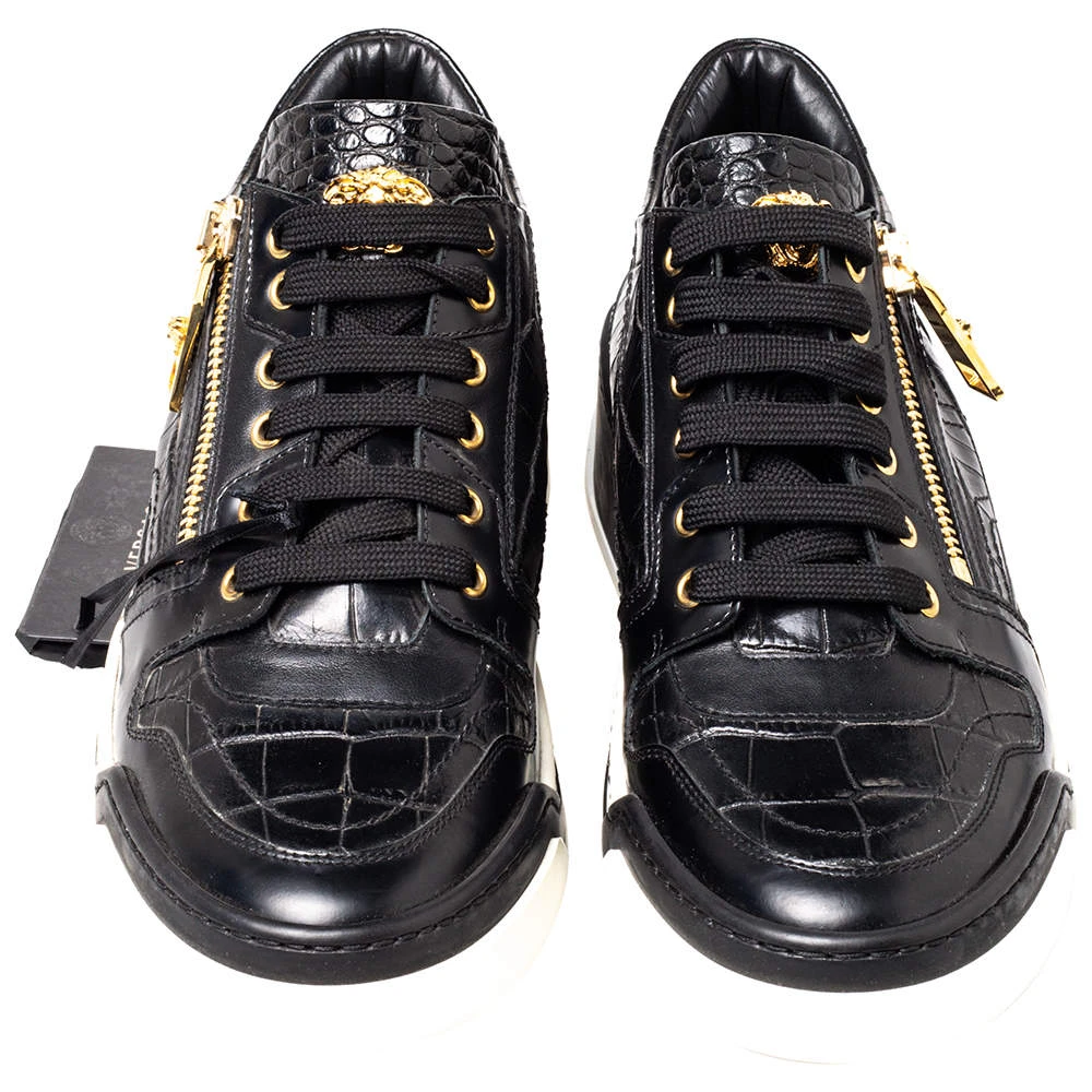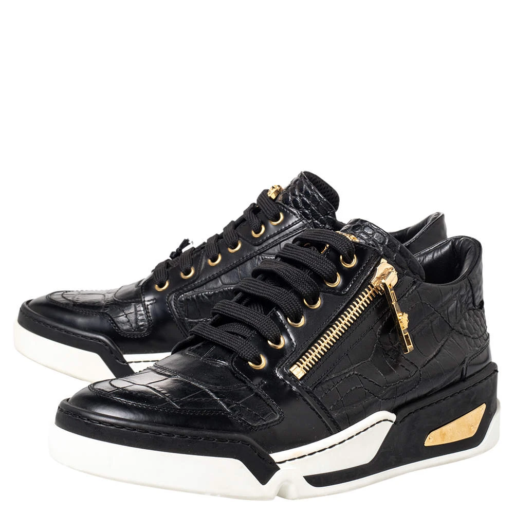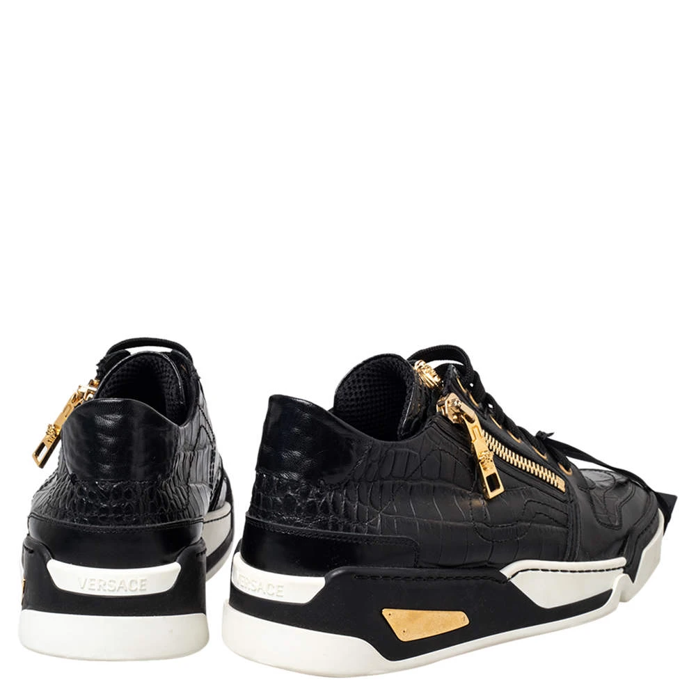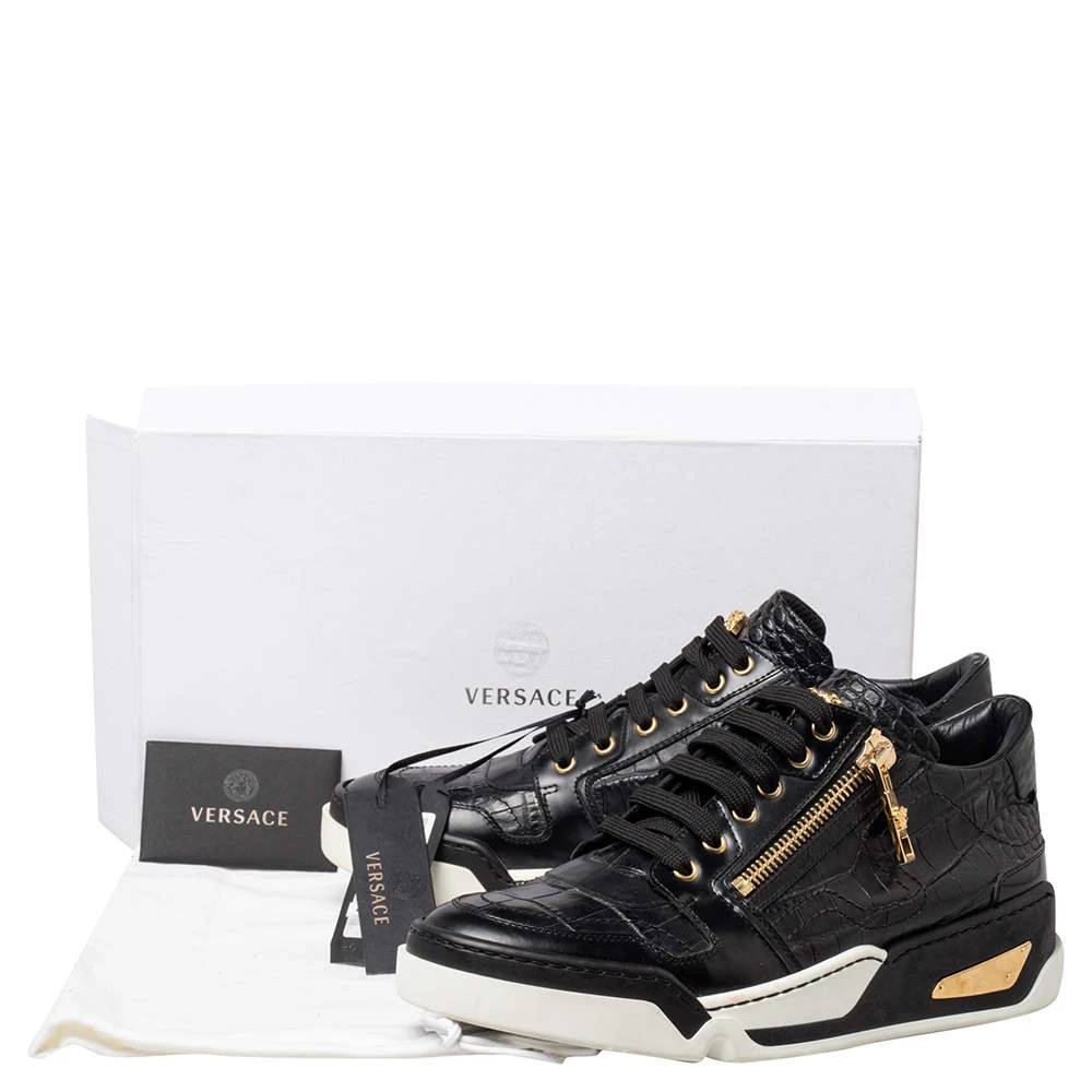 Versace Black Croc Embossed And Leather Low Top Sneakers Size 41 For Men