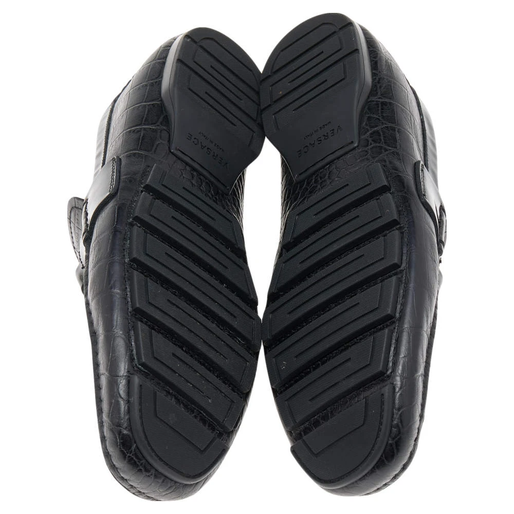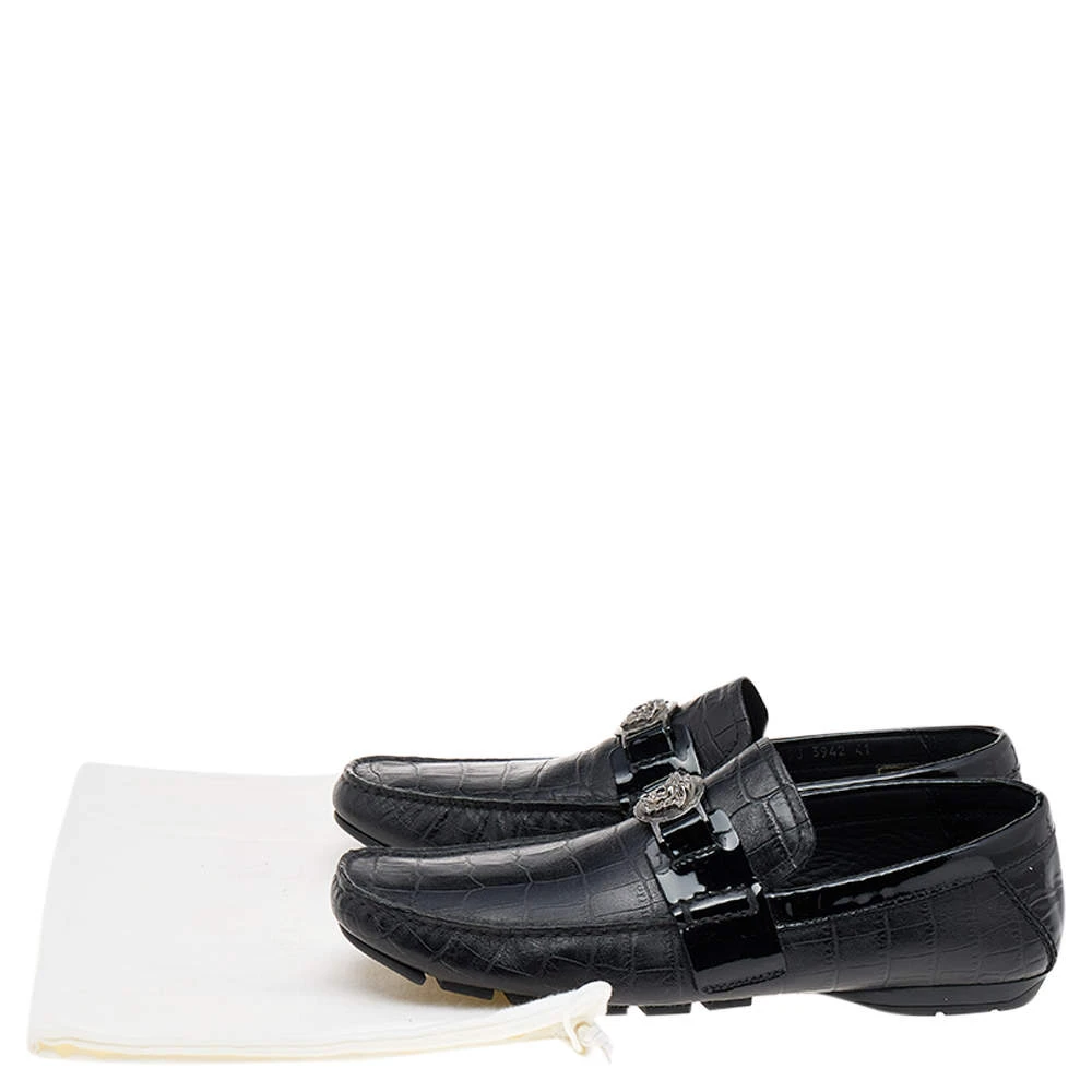 Versace Black Croc Embossed And Patent Leather Medusa Loafers Size 41 For Men - Image 5