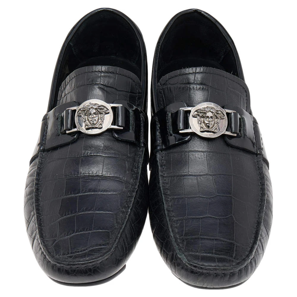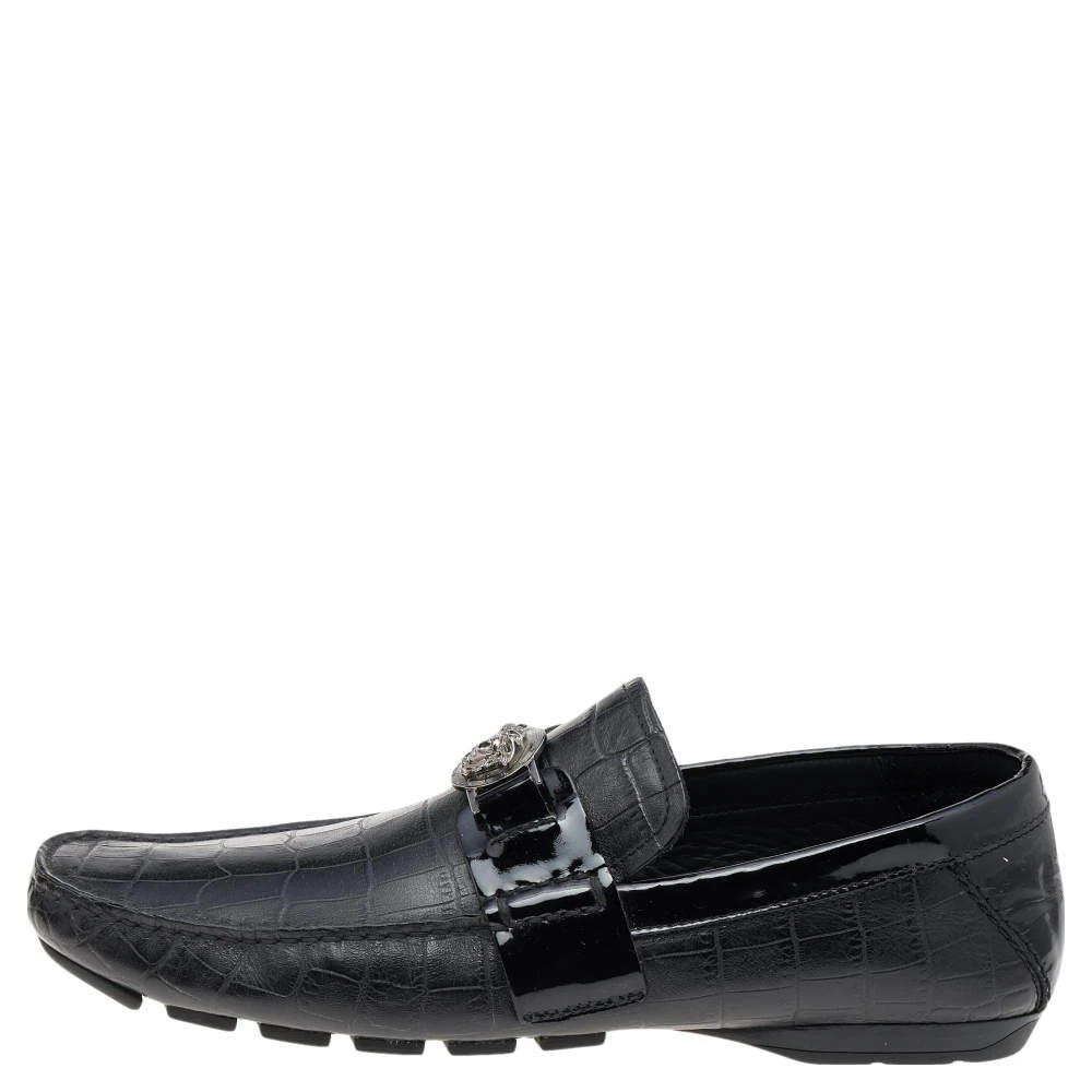 Versace Black Croc Embossed And Patent Leather Medusa Loafers Size 41 For Men