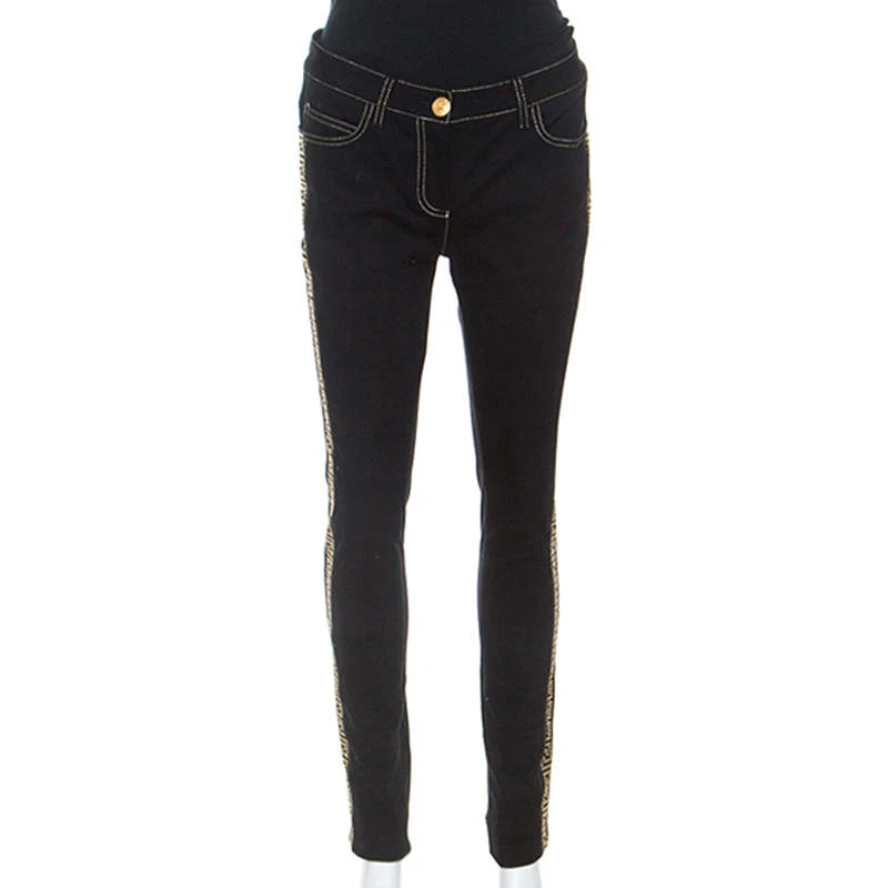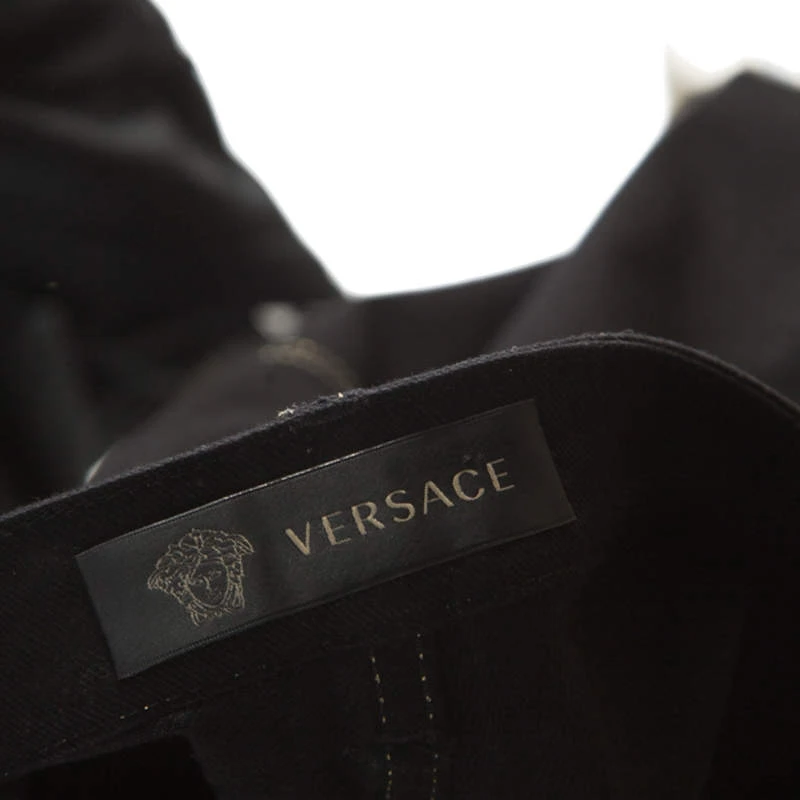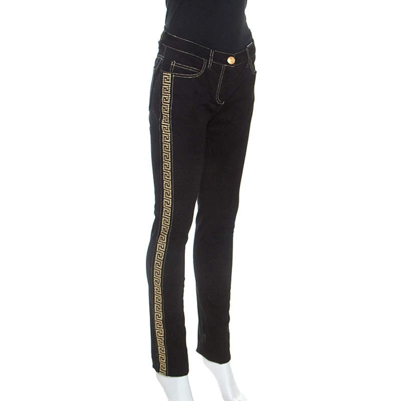 For days when you want to dress casually, this pair of Versace jeans will be just right. Made from cotton and elastane, the black jeans feature Greek key trims on the sides and the usual details of belt loops, pockets, and front zipper. The pair will offer you a nice fit.