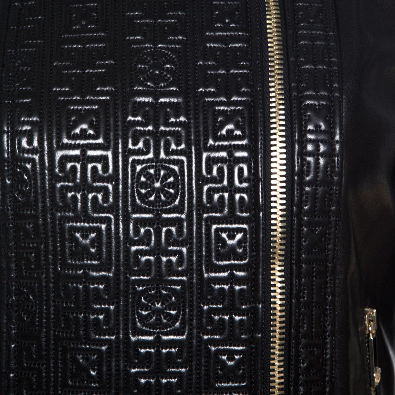 There’s just some fashion magic that leather jackets bring to one’s closet. They are a staple for one’s style. Versace brings you this black jacket beautifully tailored from leather and designed with embossed details, long sleeves, zip closure and pockets.