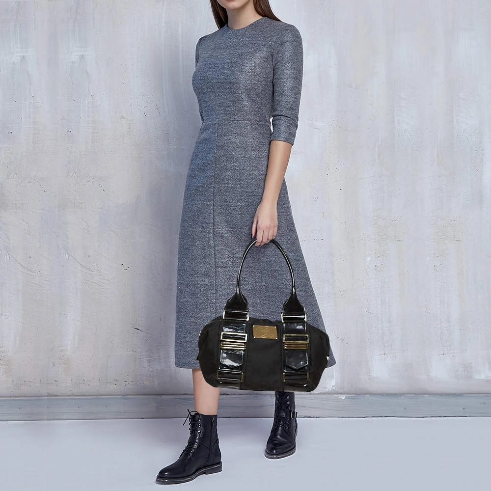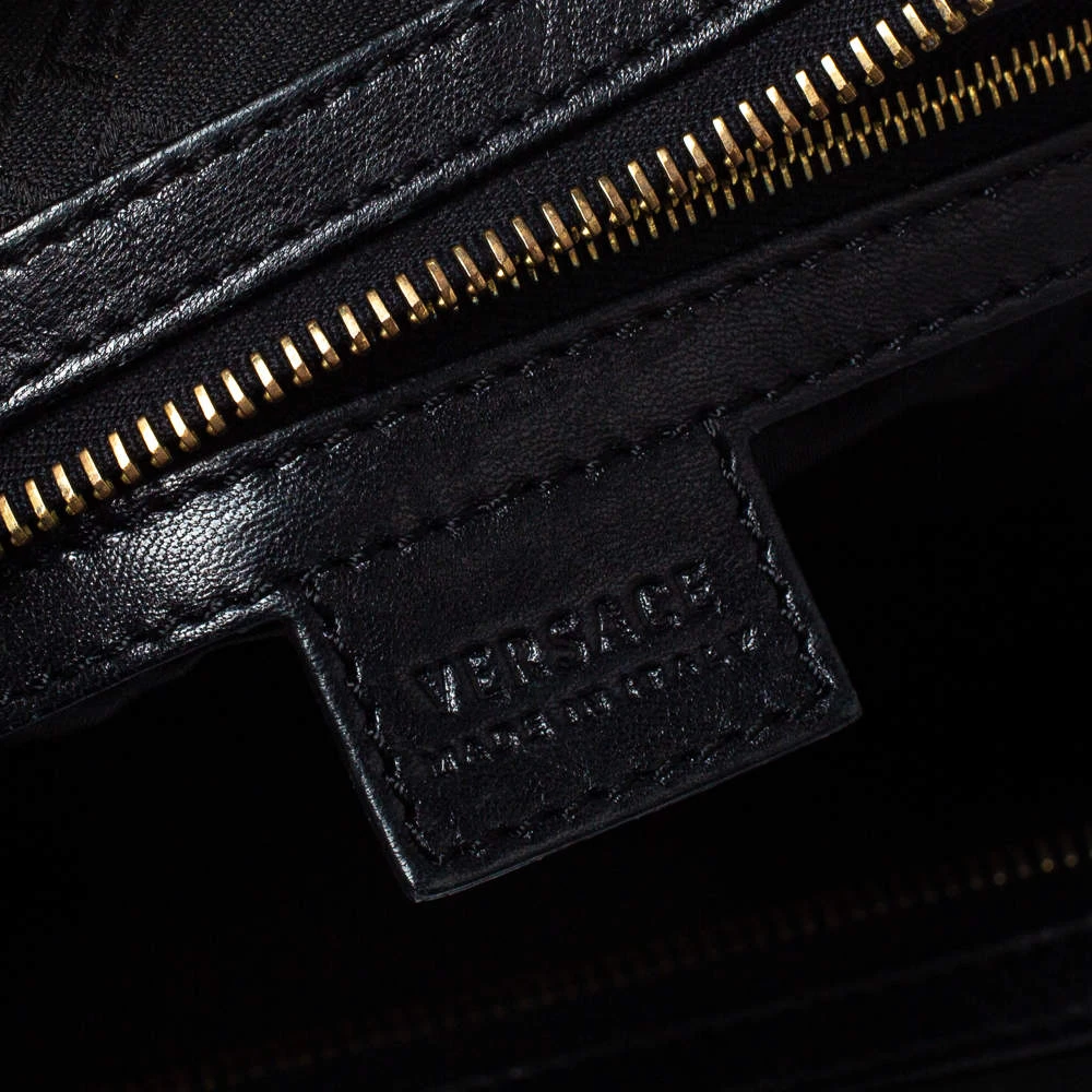 Exhibiting an up-to-date design, this tote from the house of Versace is an instant hit among fashionistas. The inside of this chic bag is beautifully stitched with satin for perfection. This fabric and patent leather bag are found in the hands of celebrity divas across the world. Team it up with the same colored shoes, and you are set to go.
