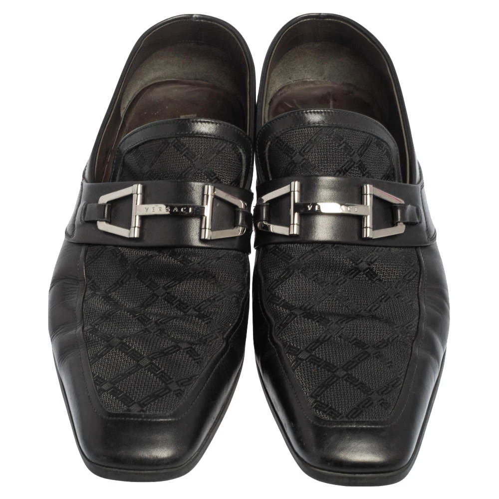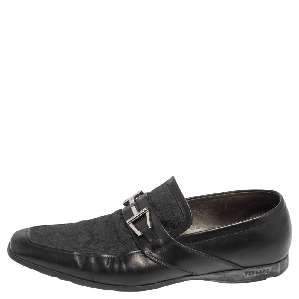Let your style be polished and luxe as you wear these square-toe loafers for the day. These loafers are crafted by the House of Versace by using fabric and leather to create the exterior. A silver-toned logo is perched on the vamps. Easy to wear and classy, these loafers ensure that your style goes unmatched.