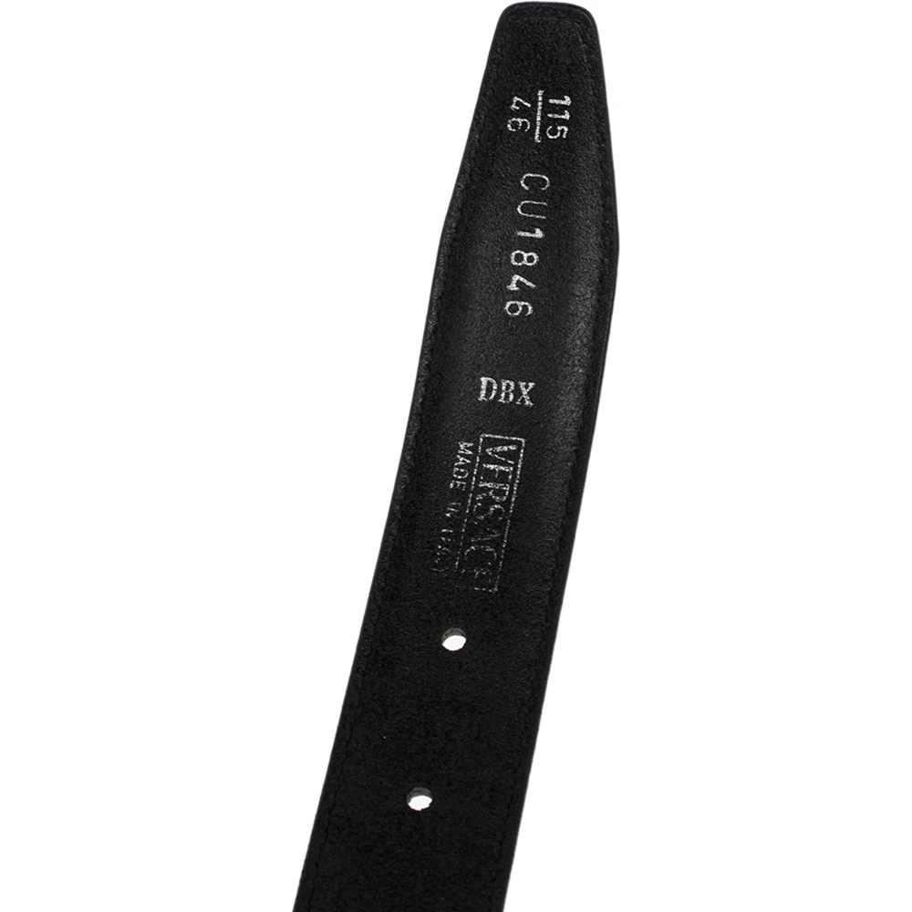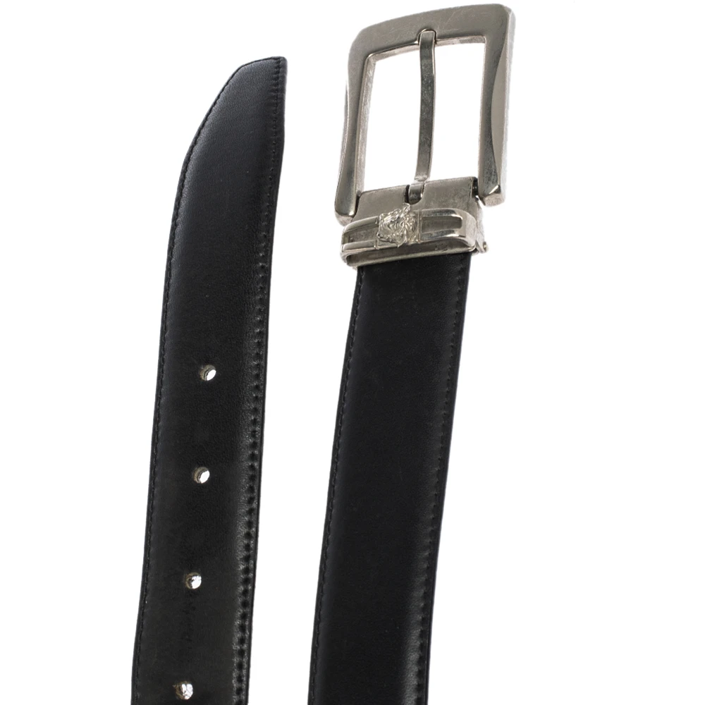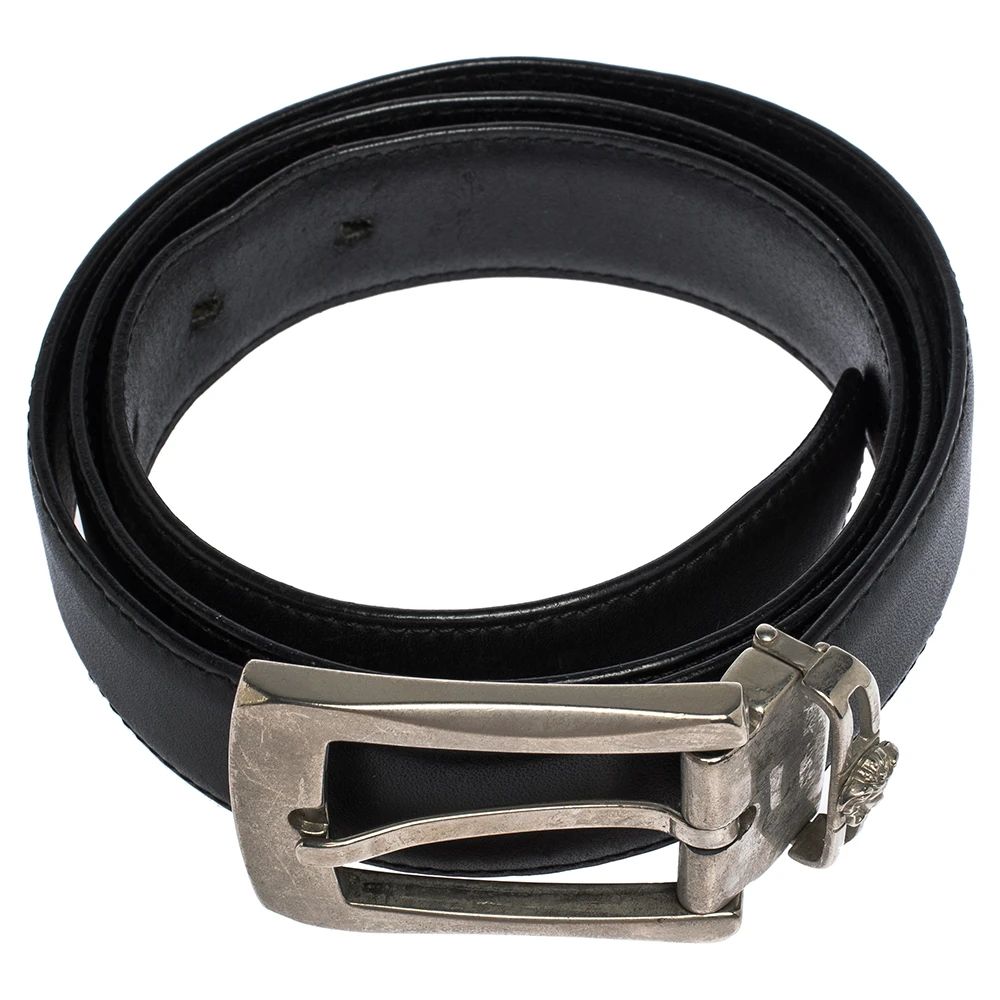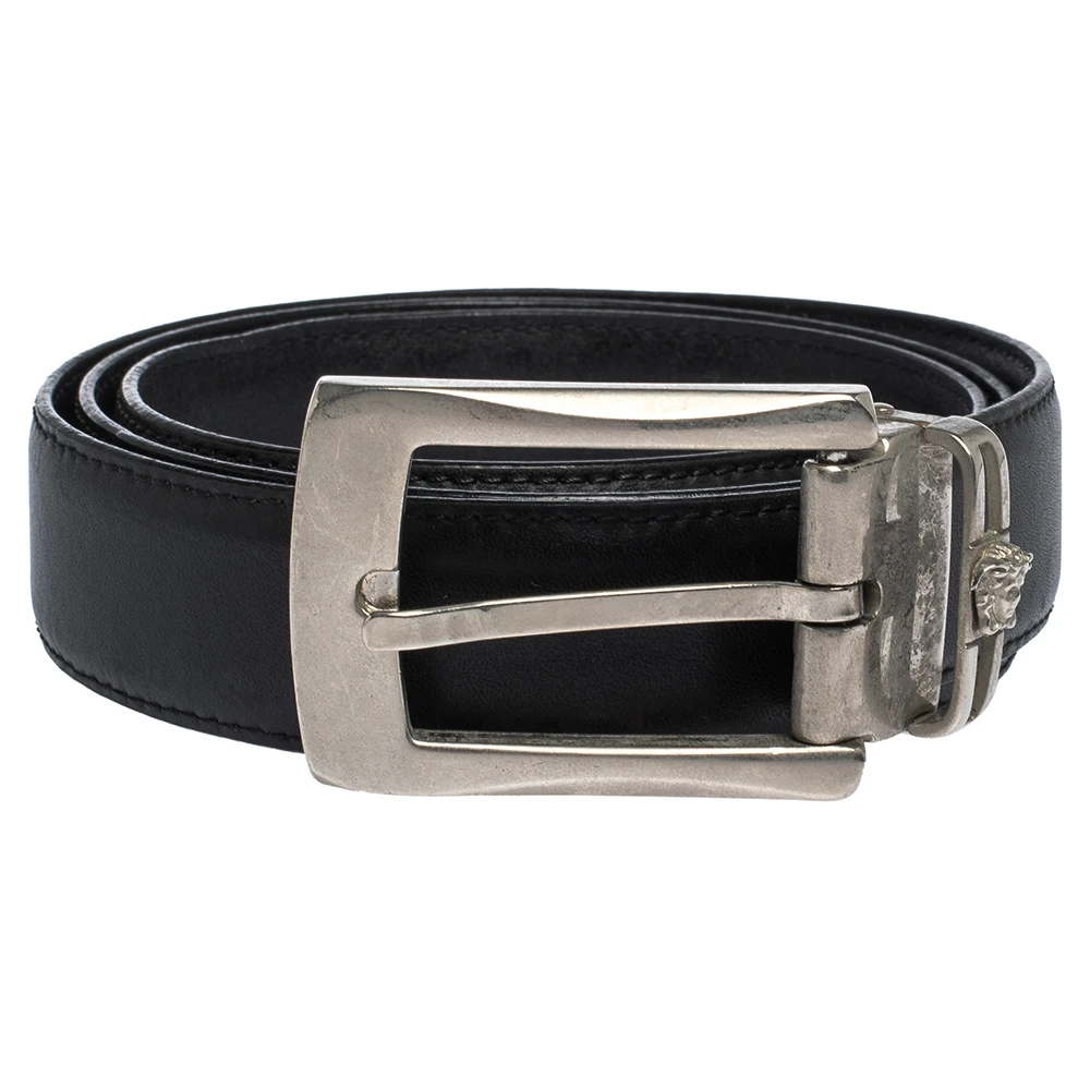 With its smart and luxurious look that will never go out of fashion, this stunning Versace belt is an elegant piece of accessory that you must own. Crafted in black leather, this belt features a silver-tone buckle at the front which stands out and makes a statement.