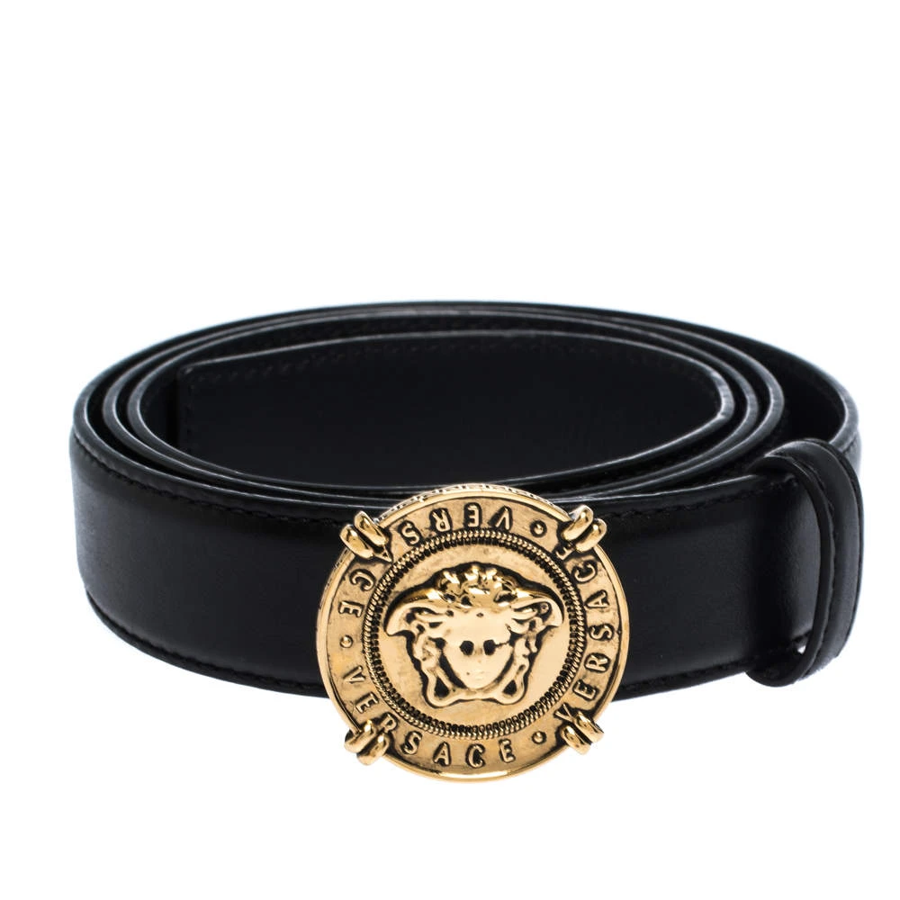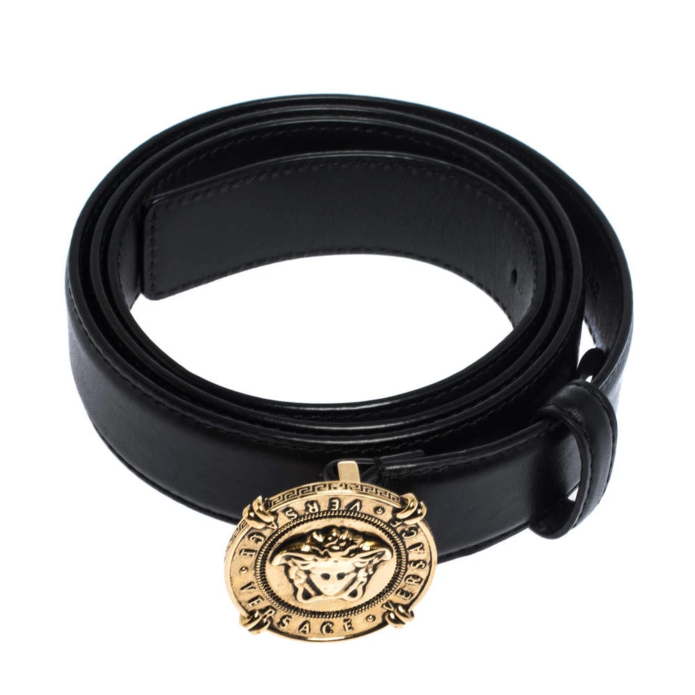 This belt from Versace is designed to give a stylish touch to your final look. It is made from leather and it has a sleek design with a gold-tone Medusa buckle flaunted on the front.