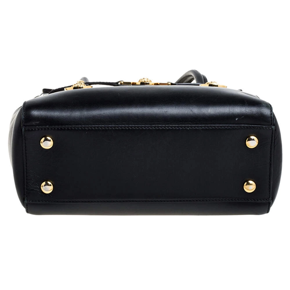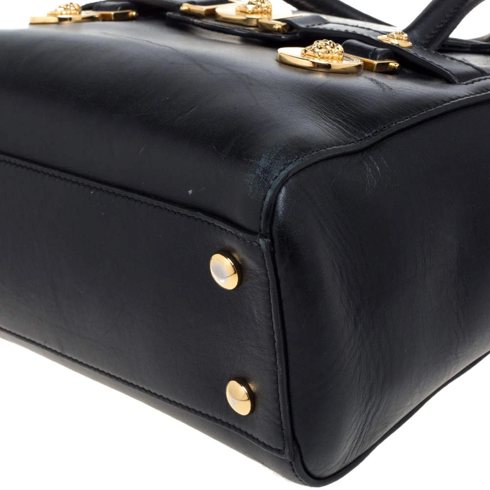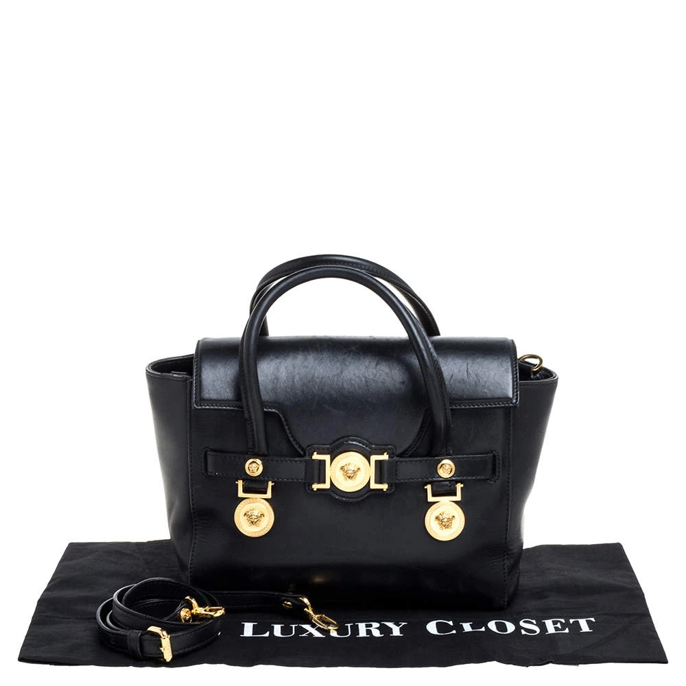 Sophisticated and luxe, this bag from Versace definitely needs to be on your wishlist. The bag is crafted from leather in a black shade and it features a structured silhouette. It flaunts dual handles, a removable shoulder strap, and the famous Medusa logo on the front. The spacious fabric interior houses pockets.