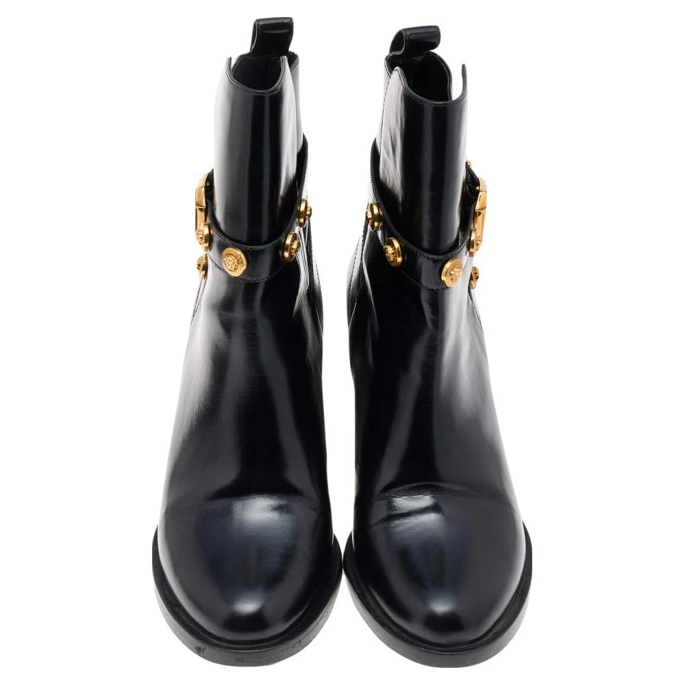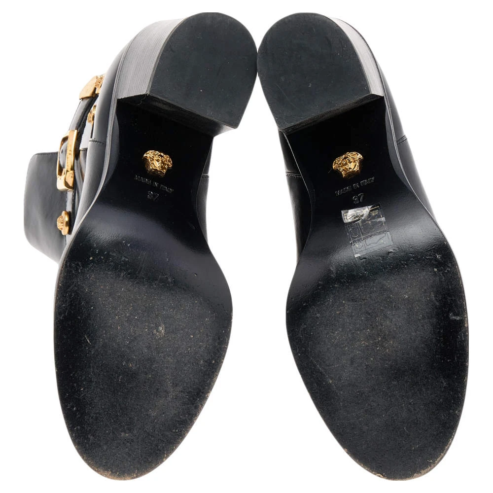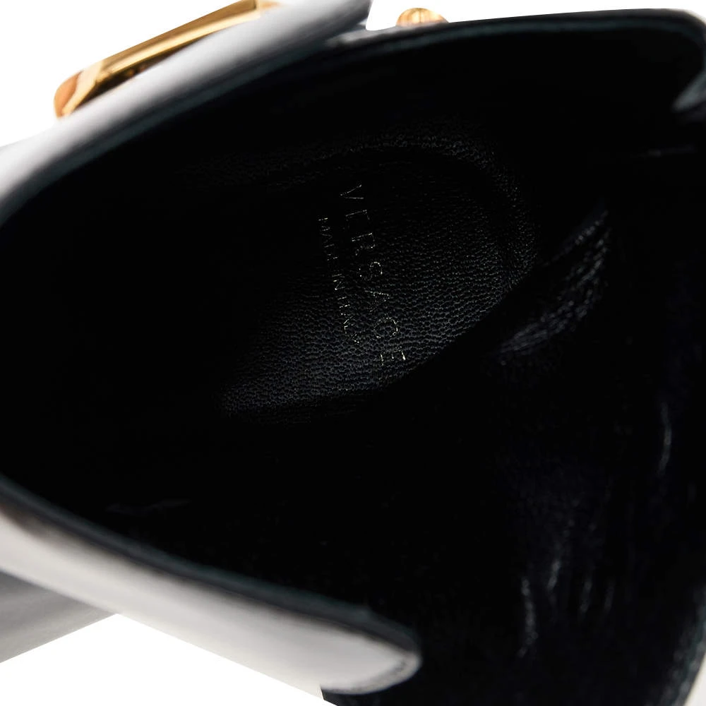 A rock-chic flair and a sophisticated appeal characterize these stunning Versace boots. Crafted using quality materials, they will add an opulent charm to your look and complement many looks that you would want to create.