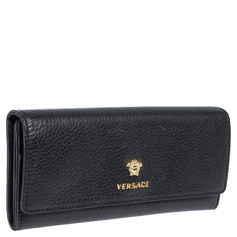 A beautiful wallet for stylish women, this Versace continental wallet is perfect to carry along with you while you step out to run errands. Crafted in black leather, this wallet has enough slots and compartments to neatly hold your necessities.
