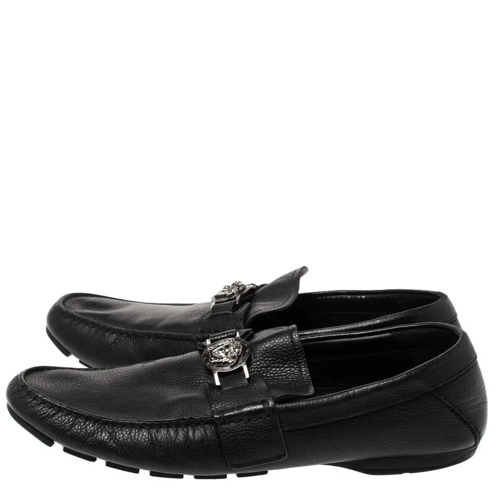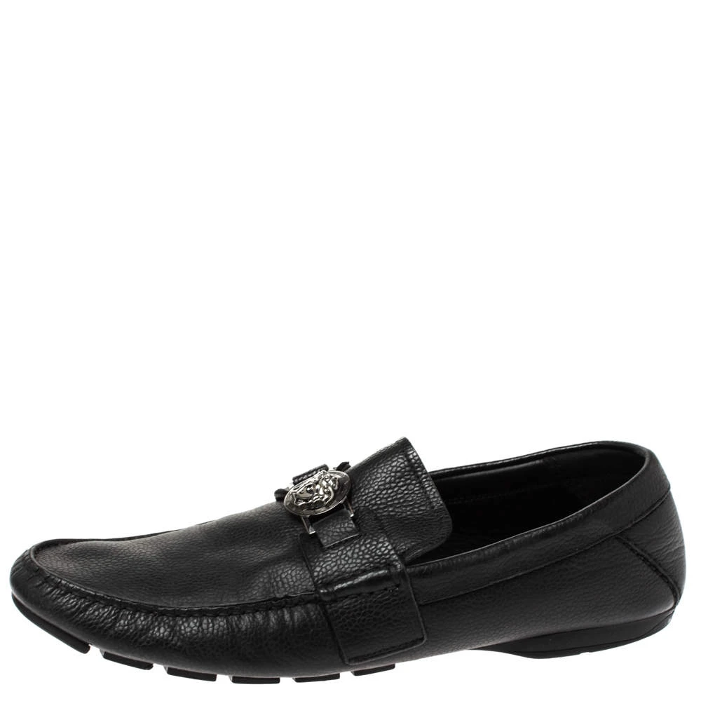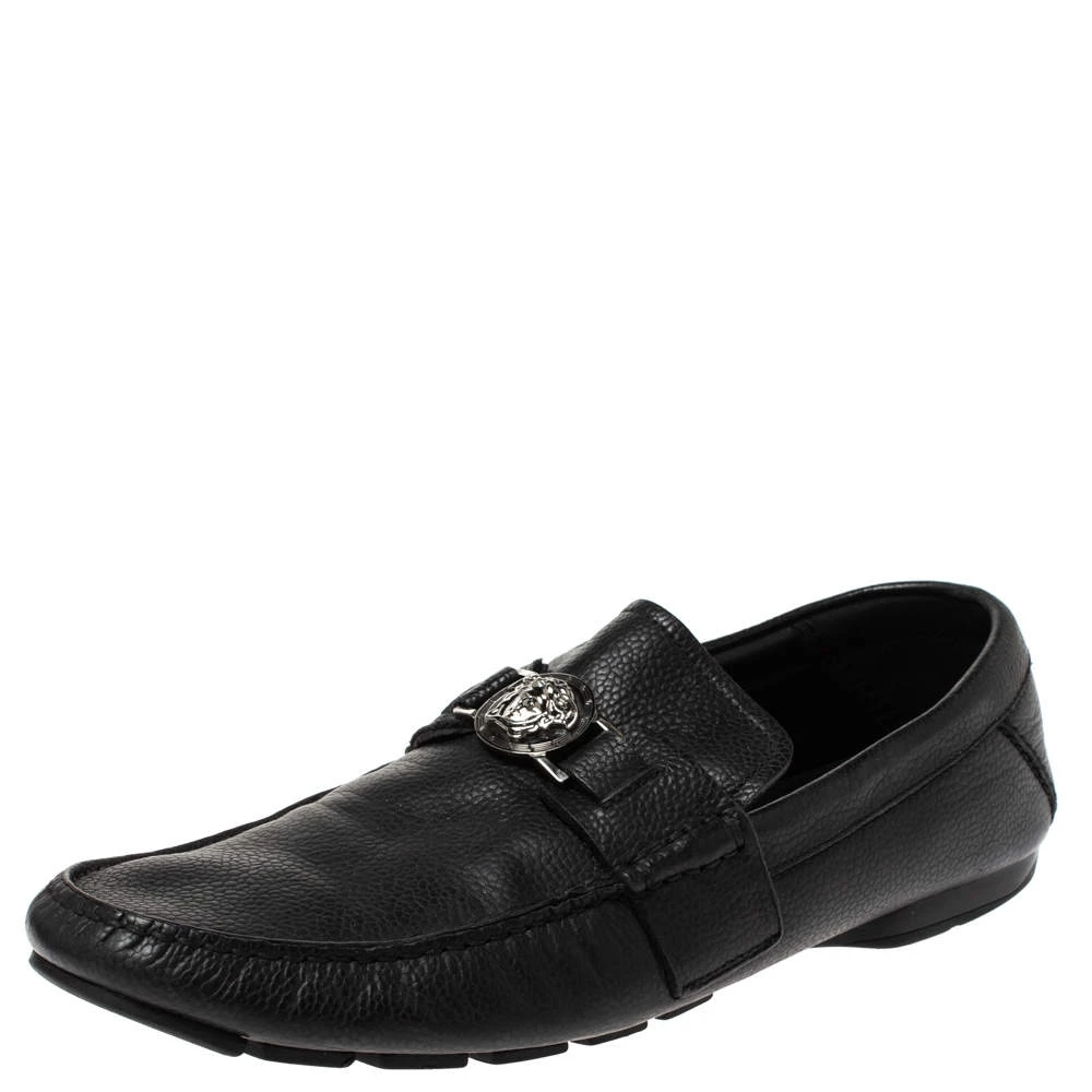 Precise stitching, use of quality leather and a calculated set of shape led to the final result of this pair of loafers. They are by Versace, and this is evidently displayed with the Medusa detail on the uppers. The loafers are wrapped in comfort and style.
