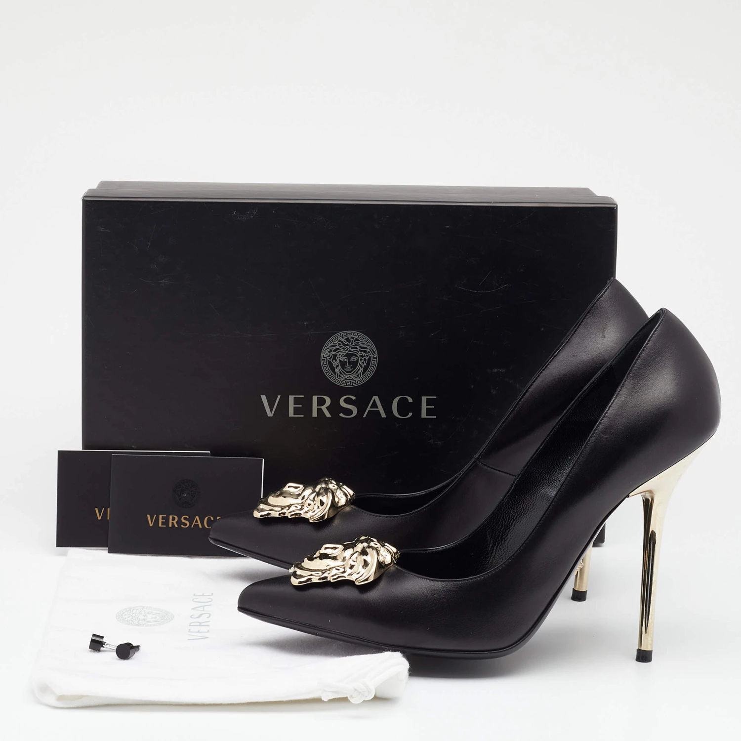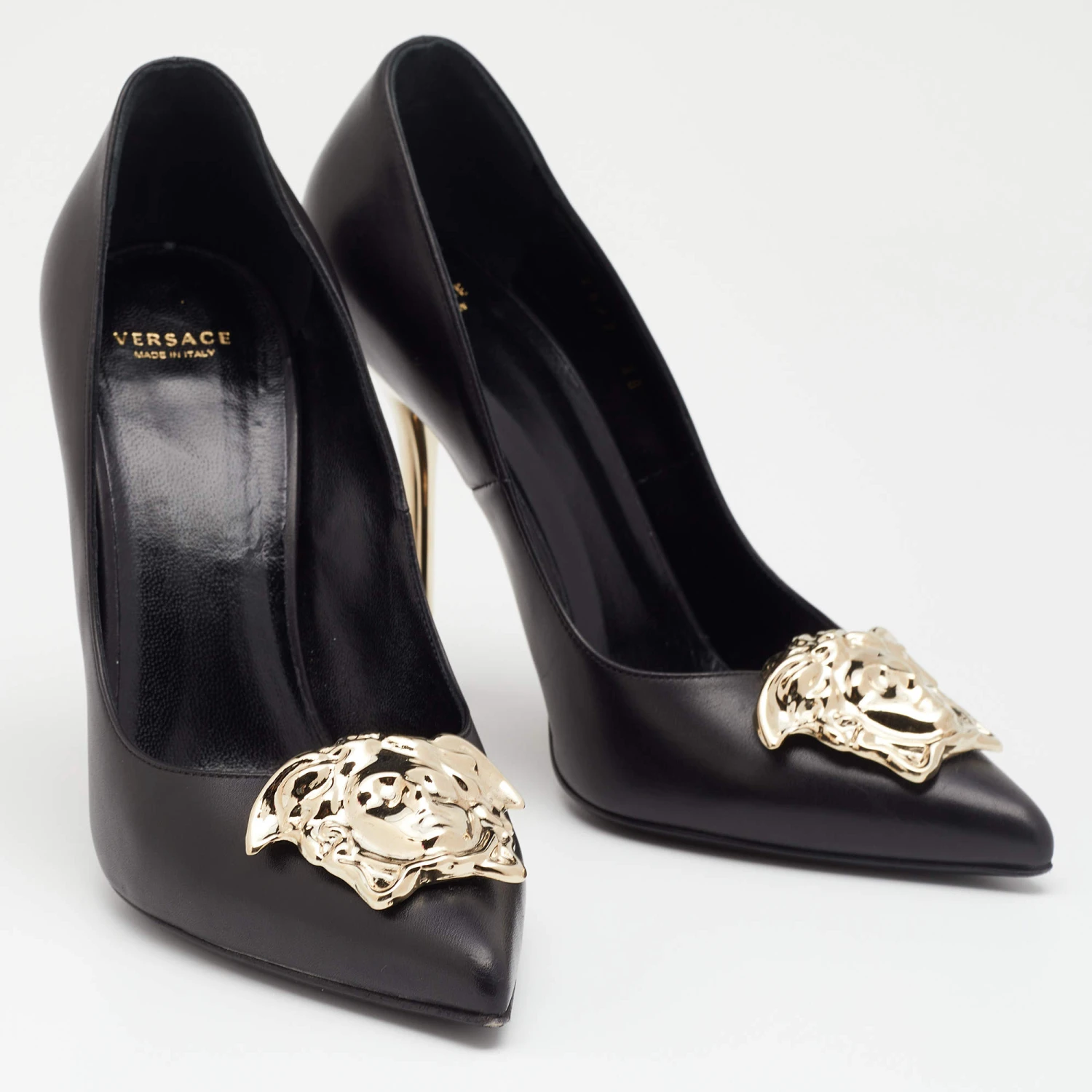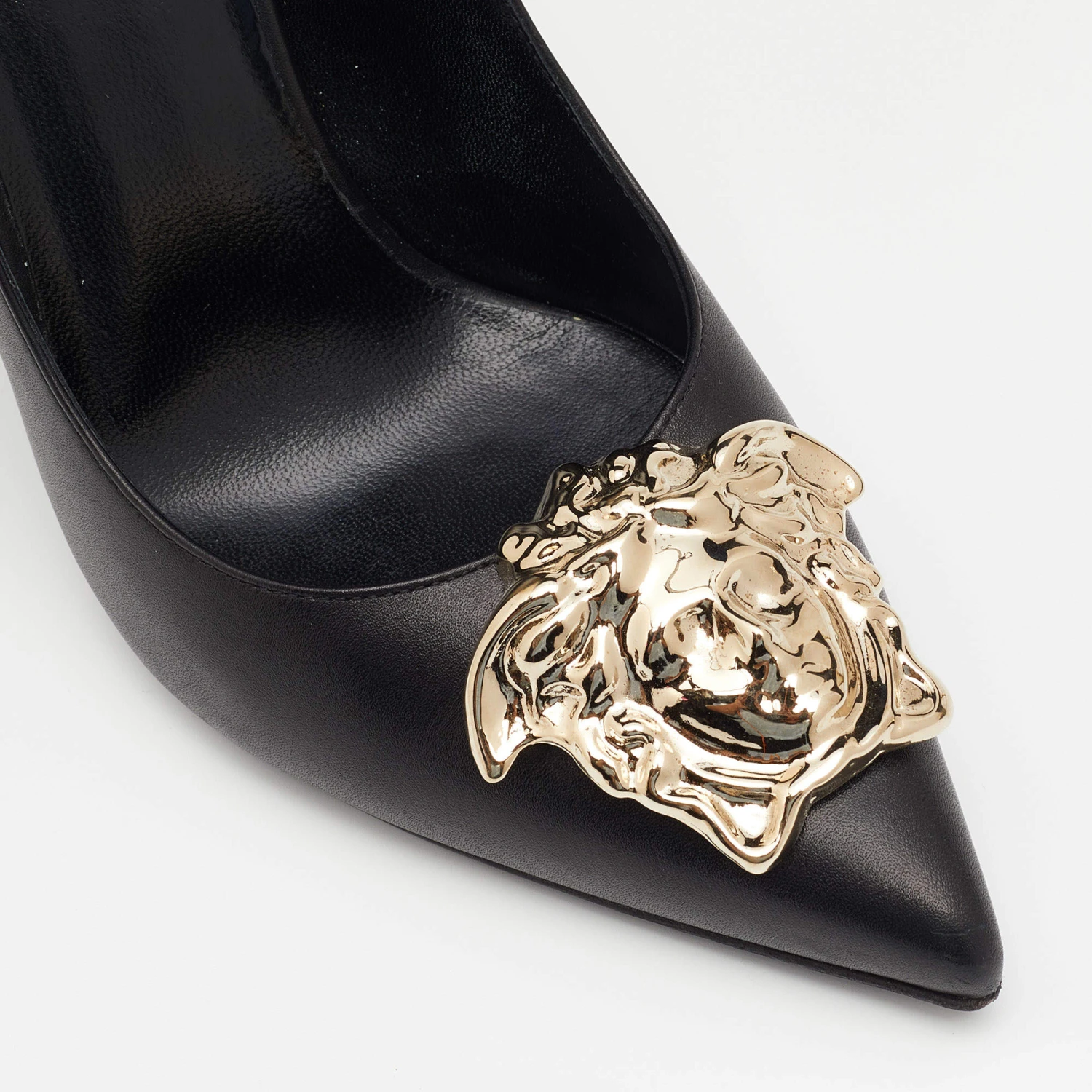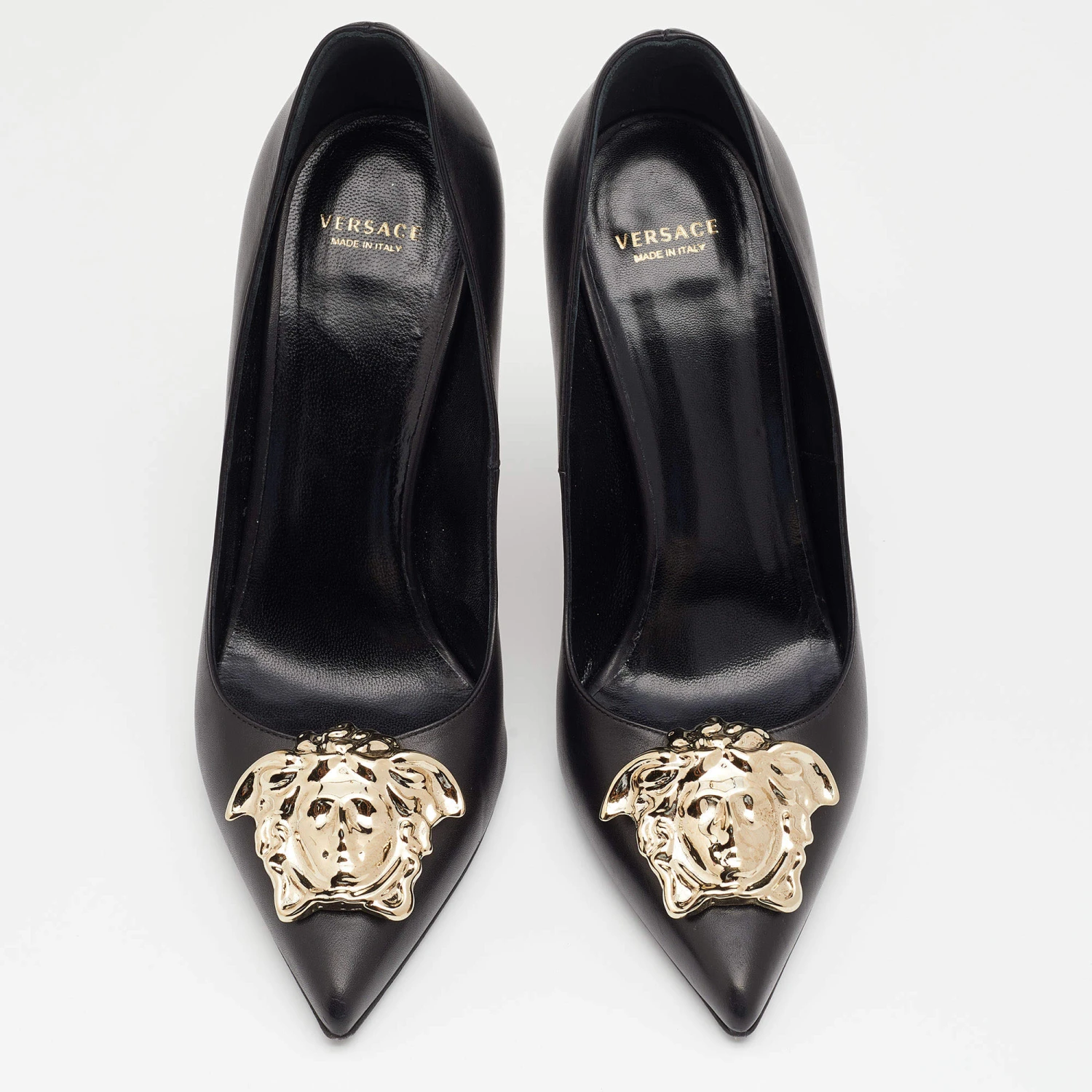 The perfect combination of timeless elegance and contemporary shape makes this pair of Versace pumps a true investment accessory. Updated with the Medusa head on the front, the pair symbolizes the rich heritage of the brand. It comes created from leather and is elegantly raised on 12cm heels.