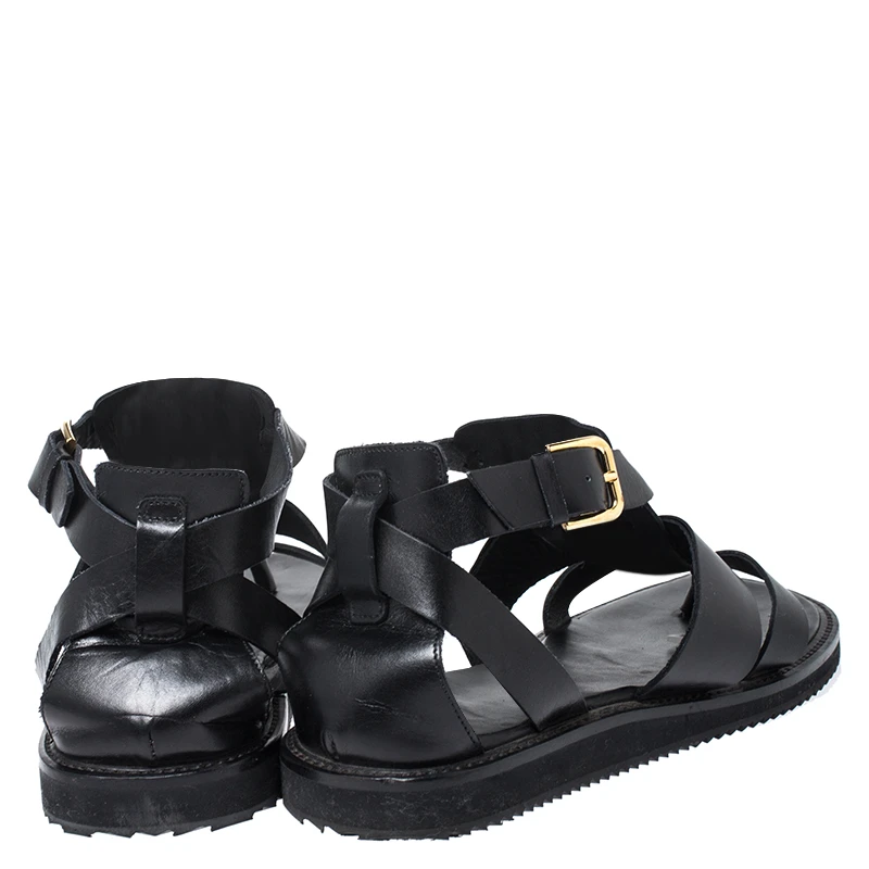 Versace Black Leather Medusa Gladiator Flat Sandals Size 43 For Men - Image 4